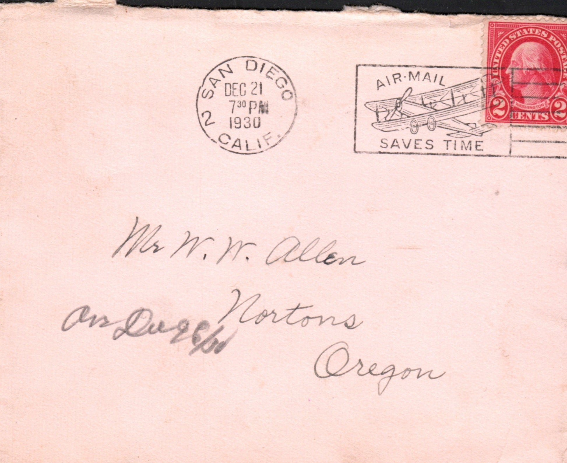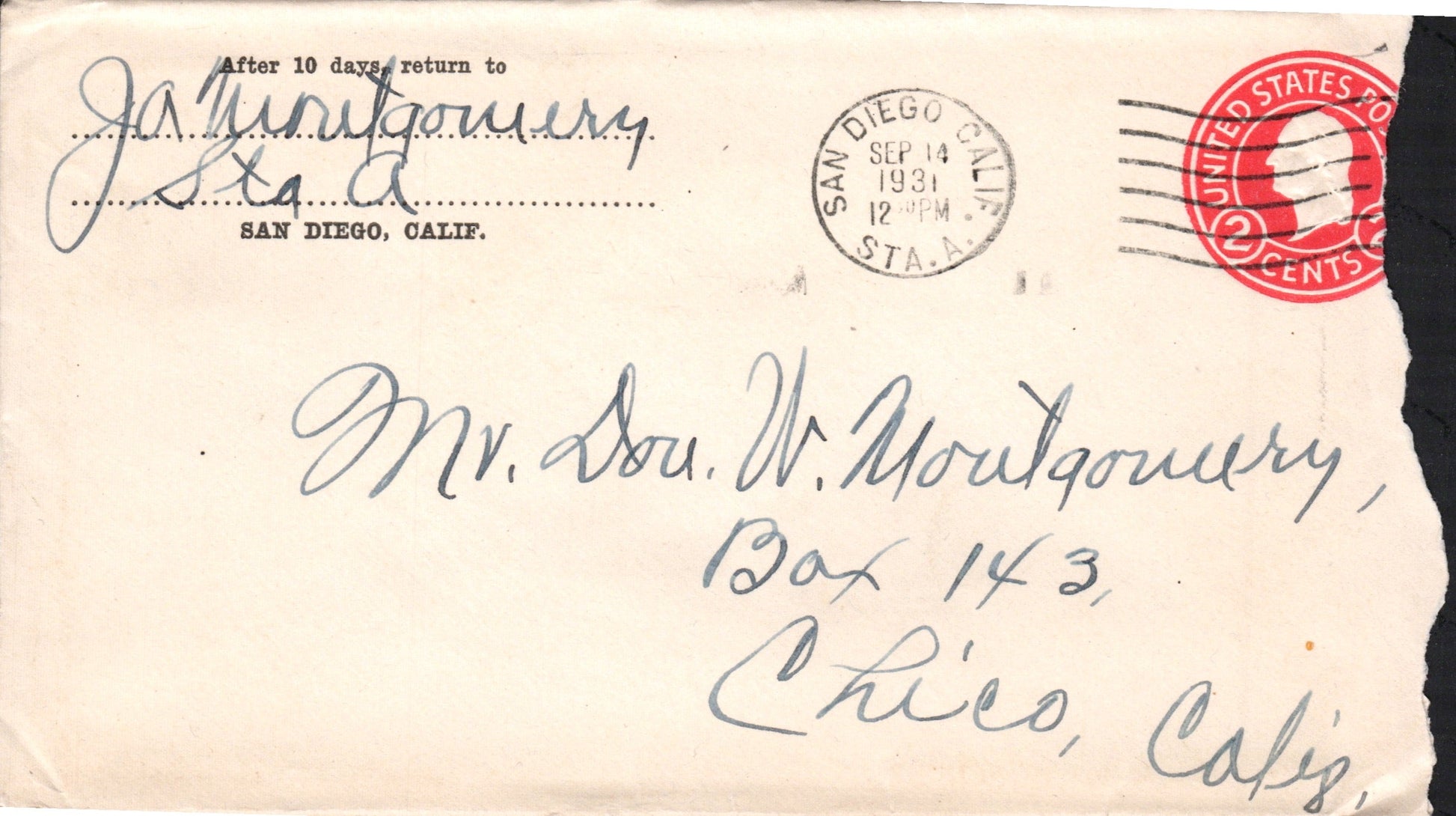 San Diego Sta. A 1931 machine cancel on cover