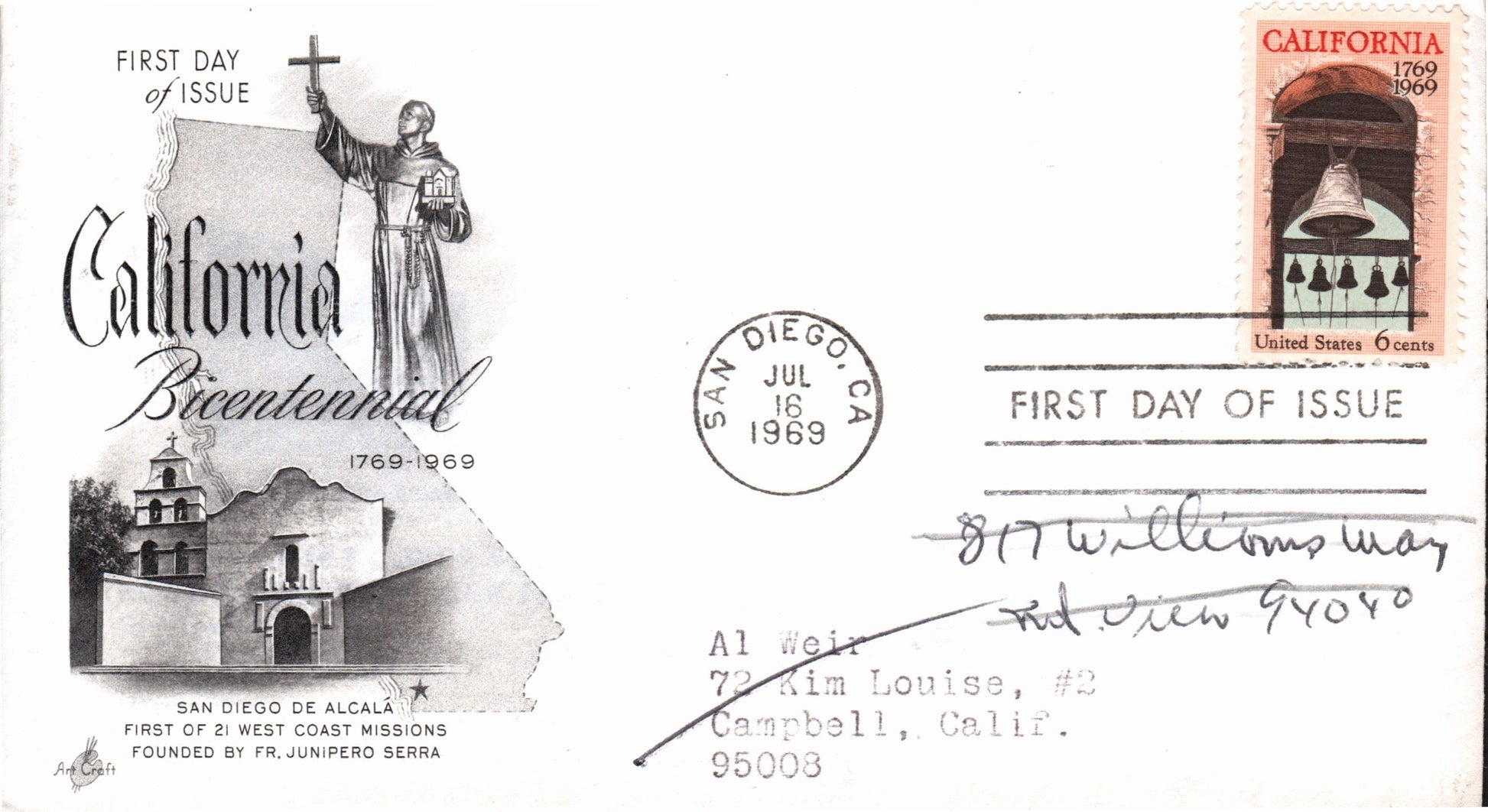 Serra Mesa Sta. (San Diego) 1965 roller pmk. on 3x5 card, FD of Postal status