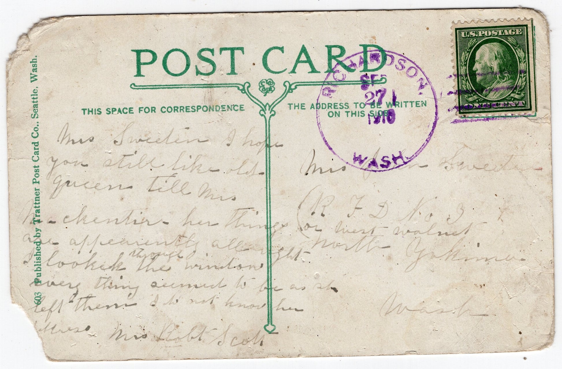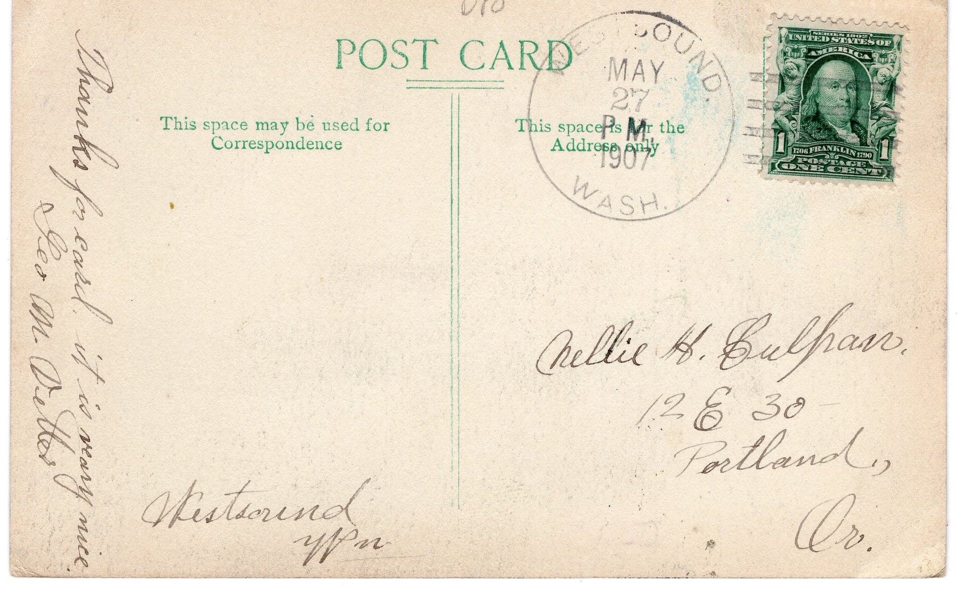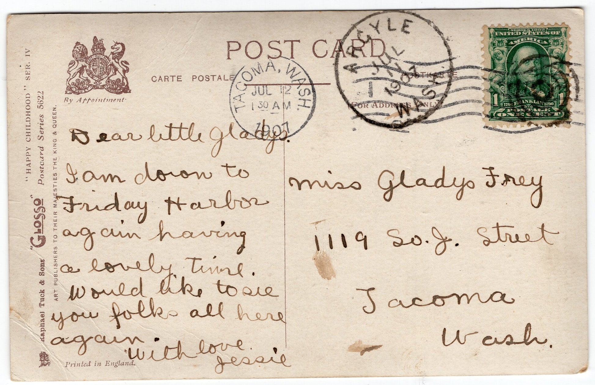 - Argyle (1886-1912) 1907 cds and target killer on post card, overstruck Tacoma machine cancel as rec’d mark