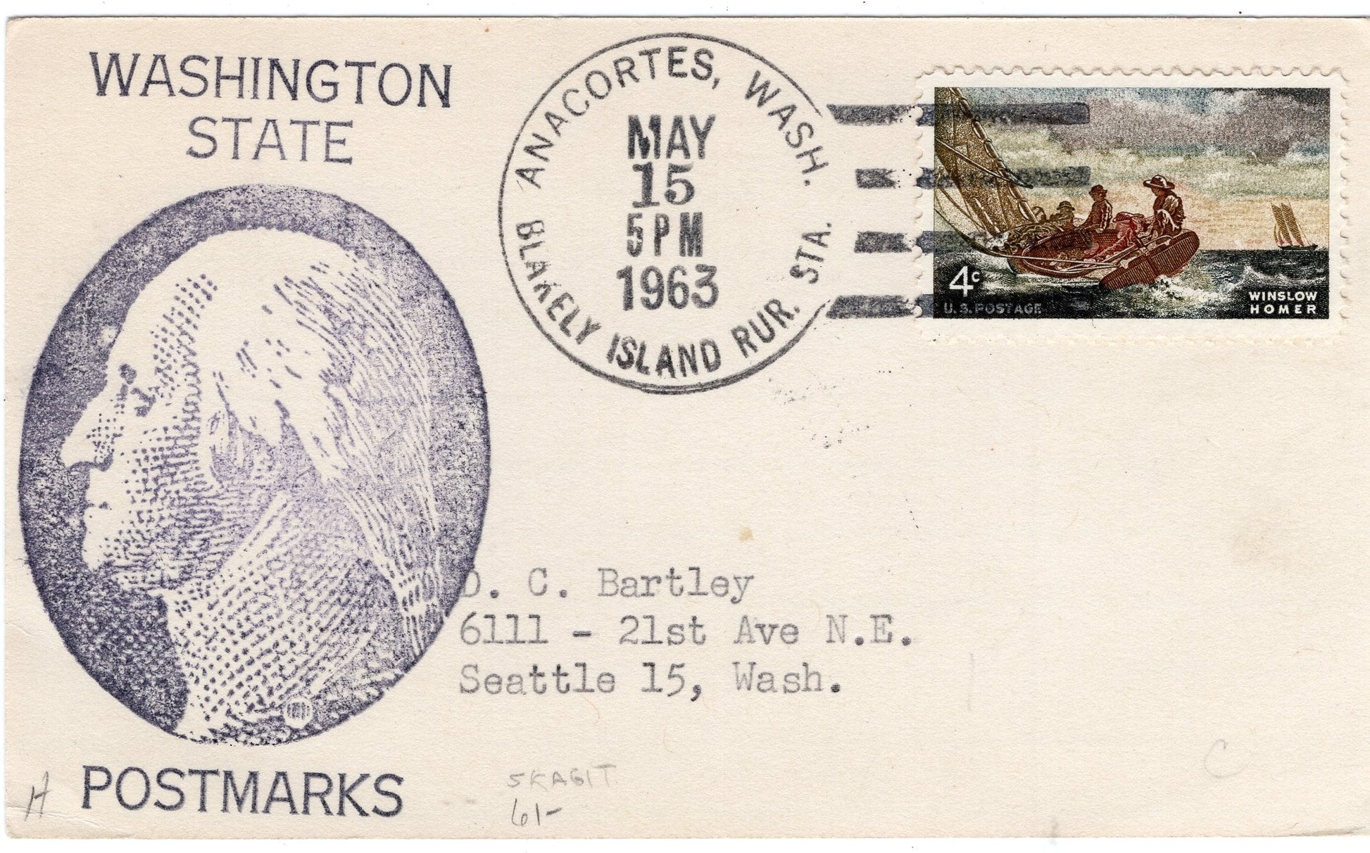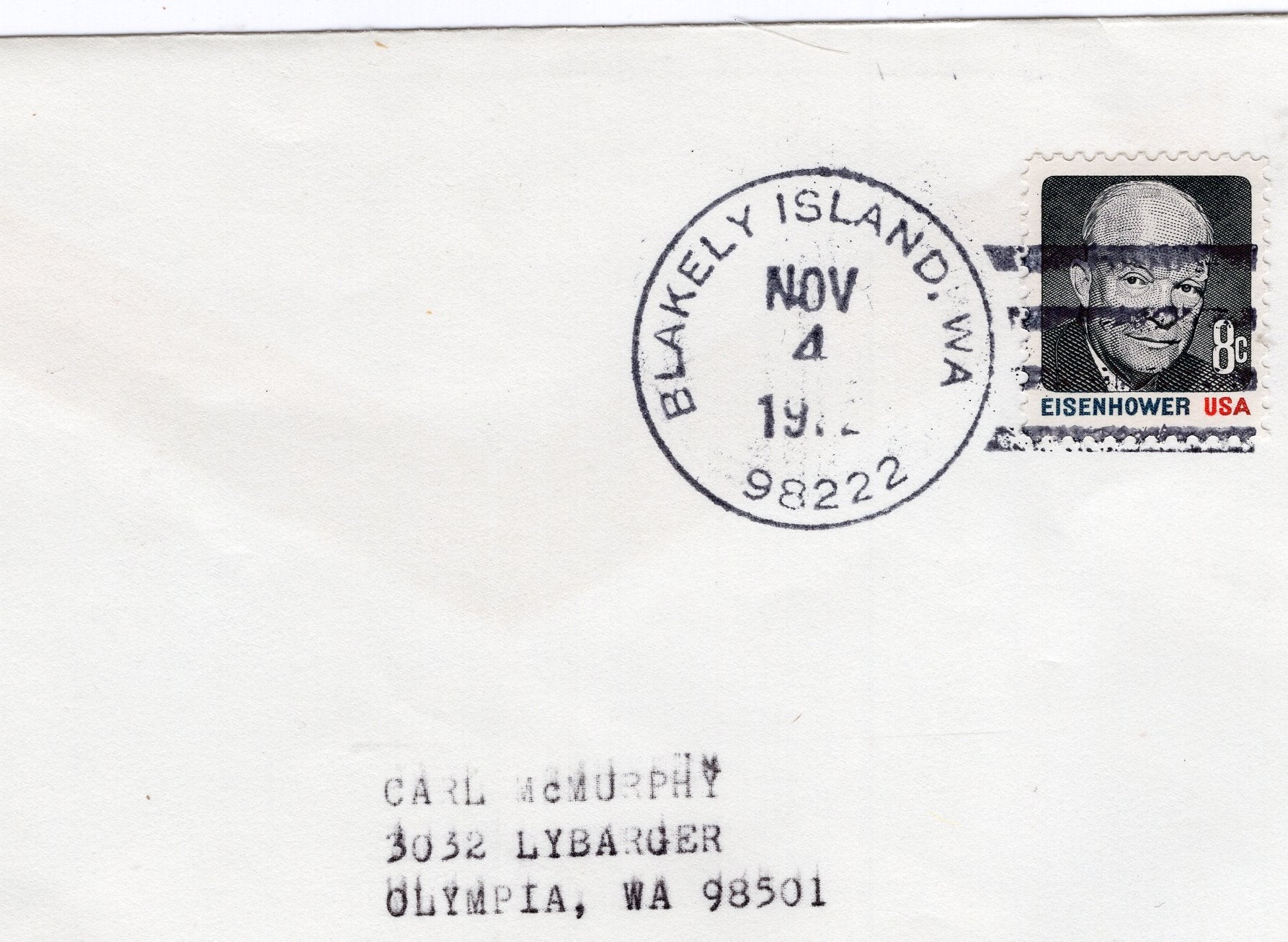 - Blakely Island CPO 1963-4-bar on 3x5 card; 1972 4-bar on cover
