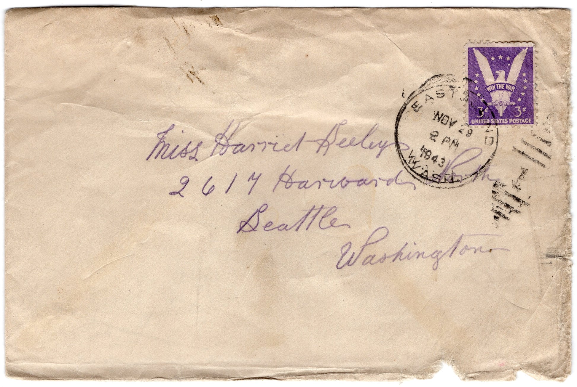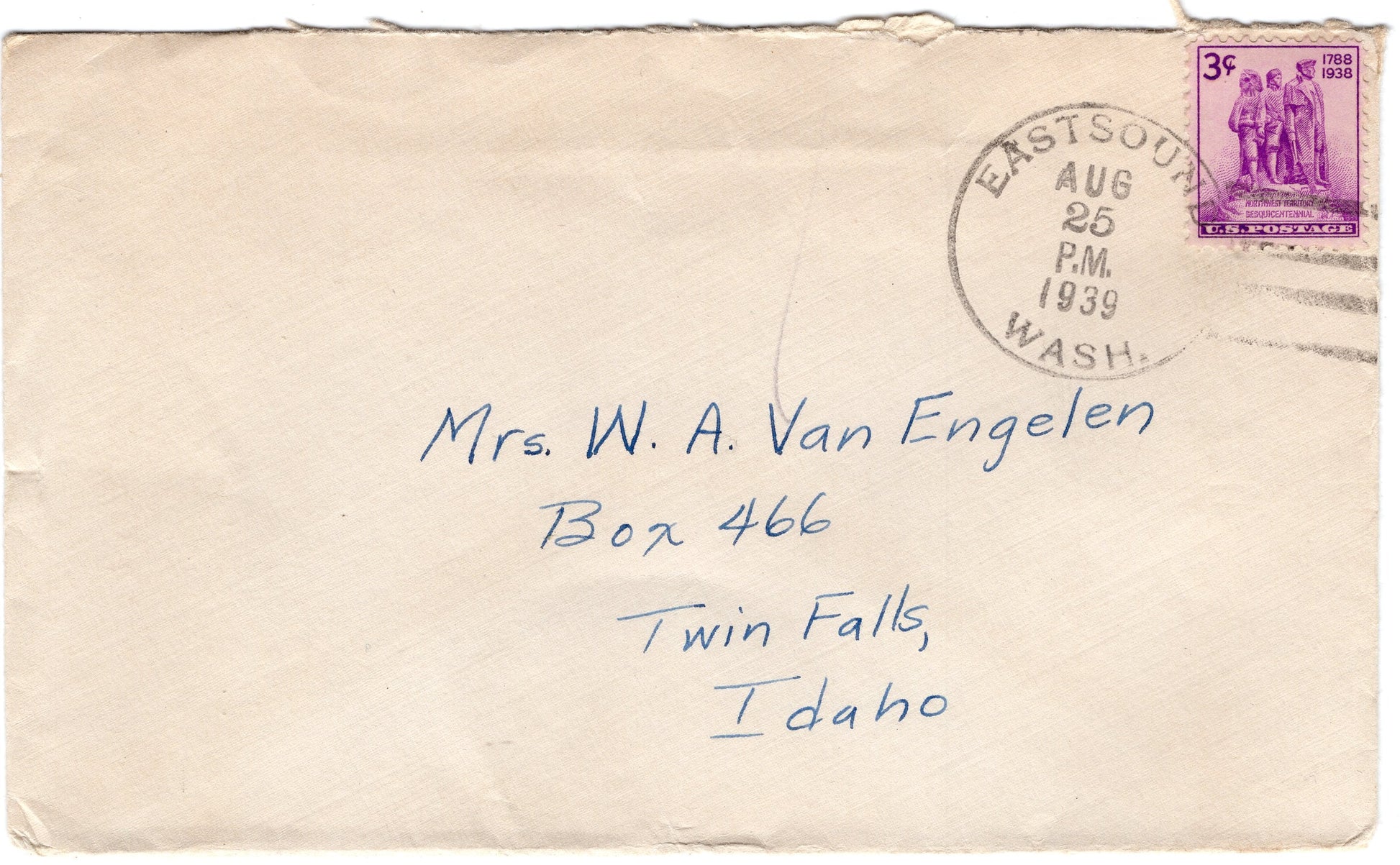 - Eastsound 1939 4-bar on cover; 1943 duplex on worn over-sized cover