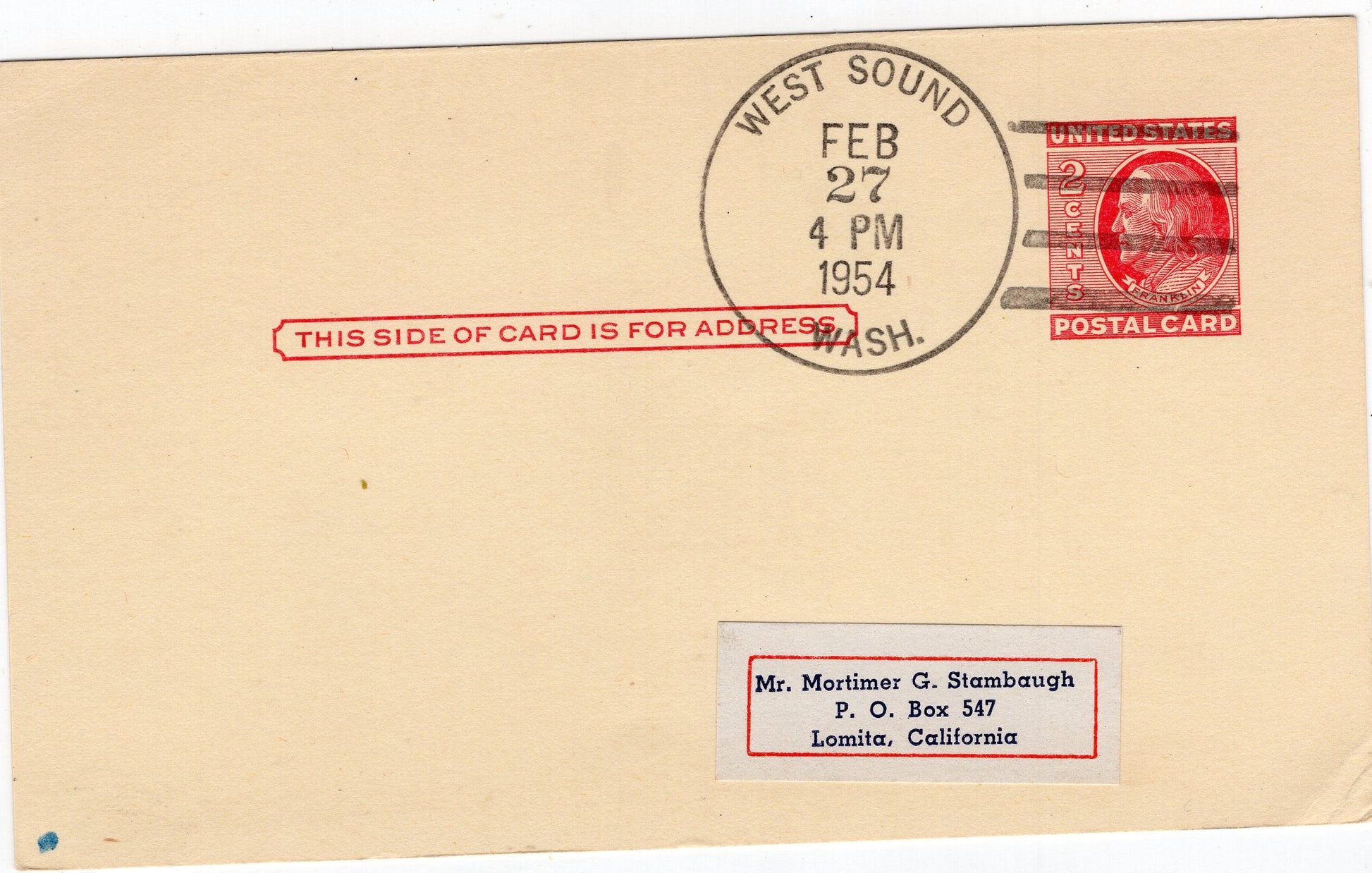 - West Sound (1892-1954) 1907 4-baron post card; 1954 4-bar on LD Postal Card