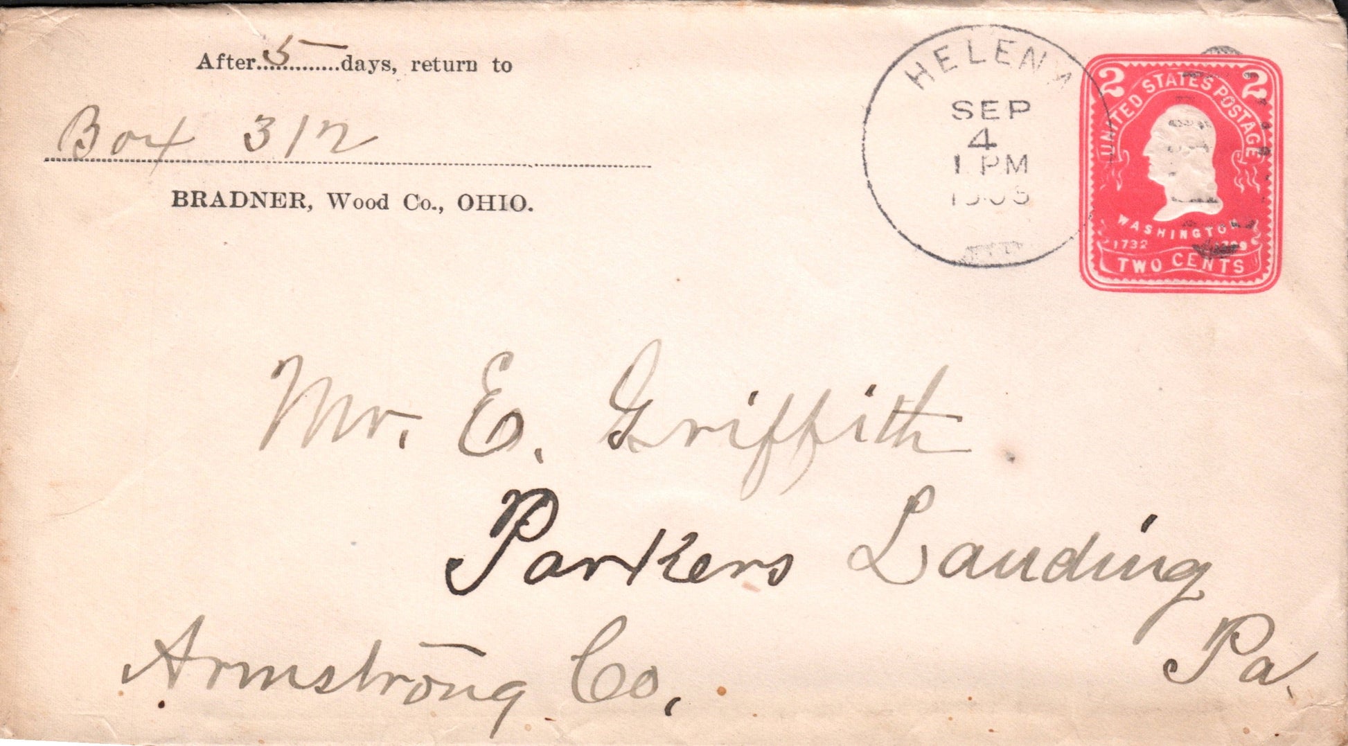 Helena 1905 duplex on cover; light 1919 4-bar on post card