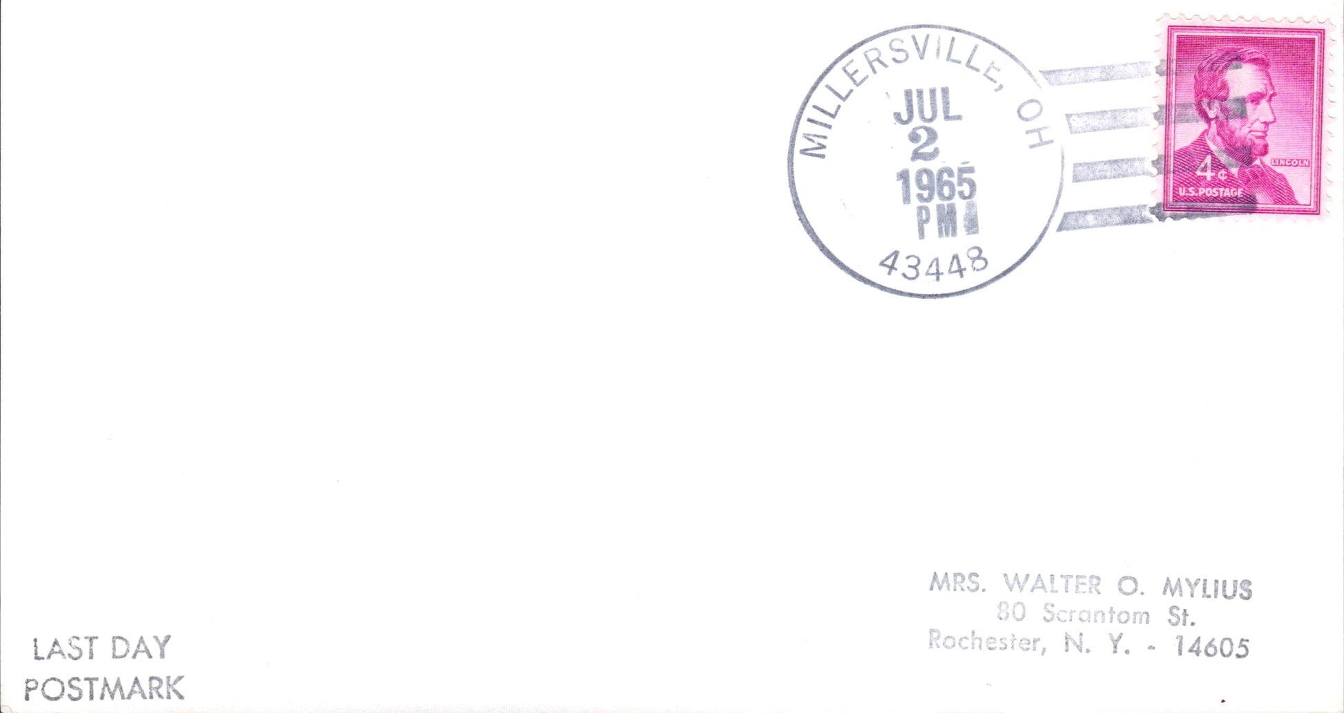Millersville (1873-1965) 1965 4-bar on LD cover-sized card