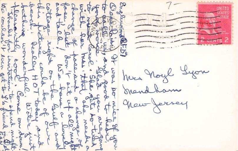 - Englewood hard-to-read 1955 machine cancel on post card, real photo view of Englewood Beach