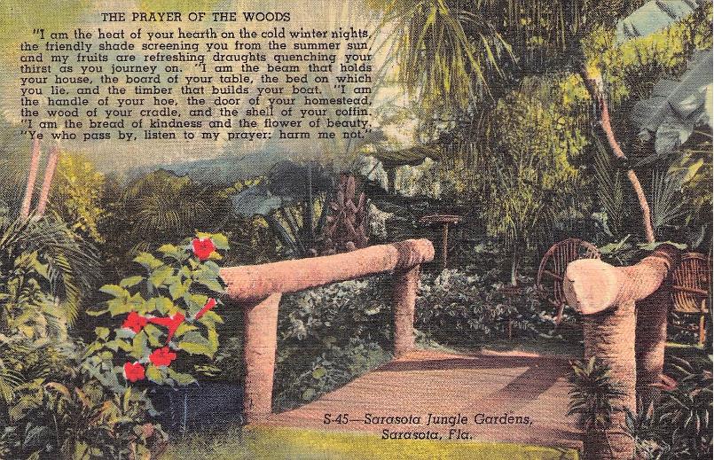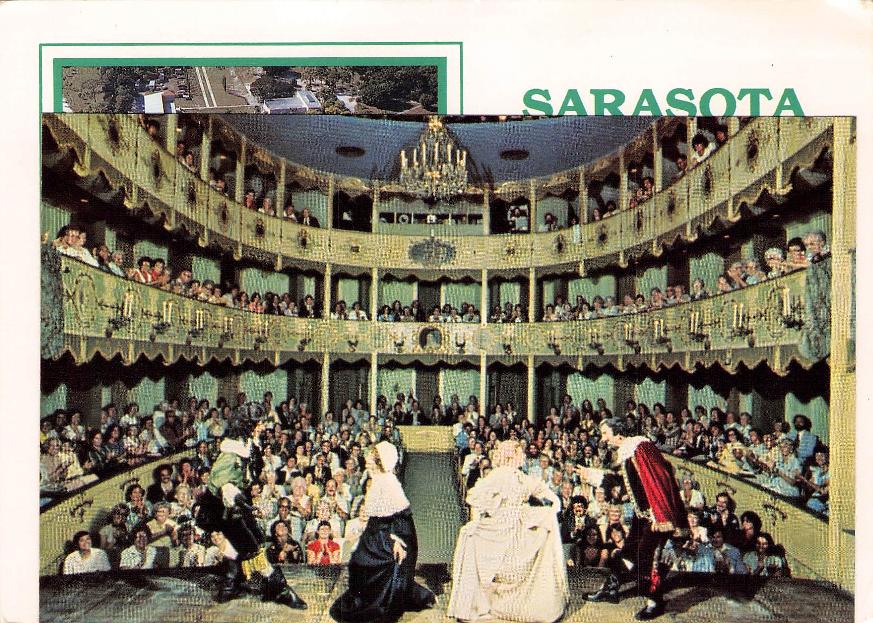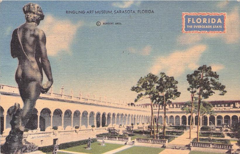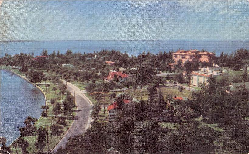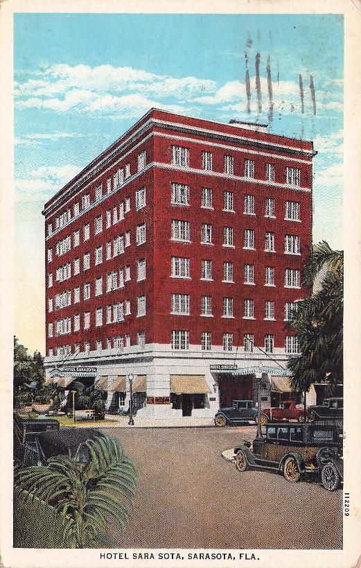 - Post cards: Skyline across waterway [chrome]; Cadillac Motel [chrome]; Lafayette Cabins [linen, 1950]; Hotel Sara Sota, marred; Coconut Palms [linen]; Boy Scouts HQ [linen, 1935]; Sarasota Kennel Club [linen]; Sarasota Lido, aerial view [linen]; Circus Hall of Fame [chrome]; John Ringling Hotel (2); Floradell Court motel [chrome]; Ringling Art Museum [linen]; Ringling mansion (7);