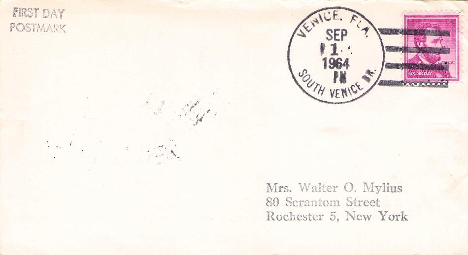 - South Venice B 1964 FD 4-bar on card with round dater on back