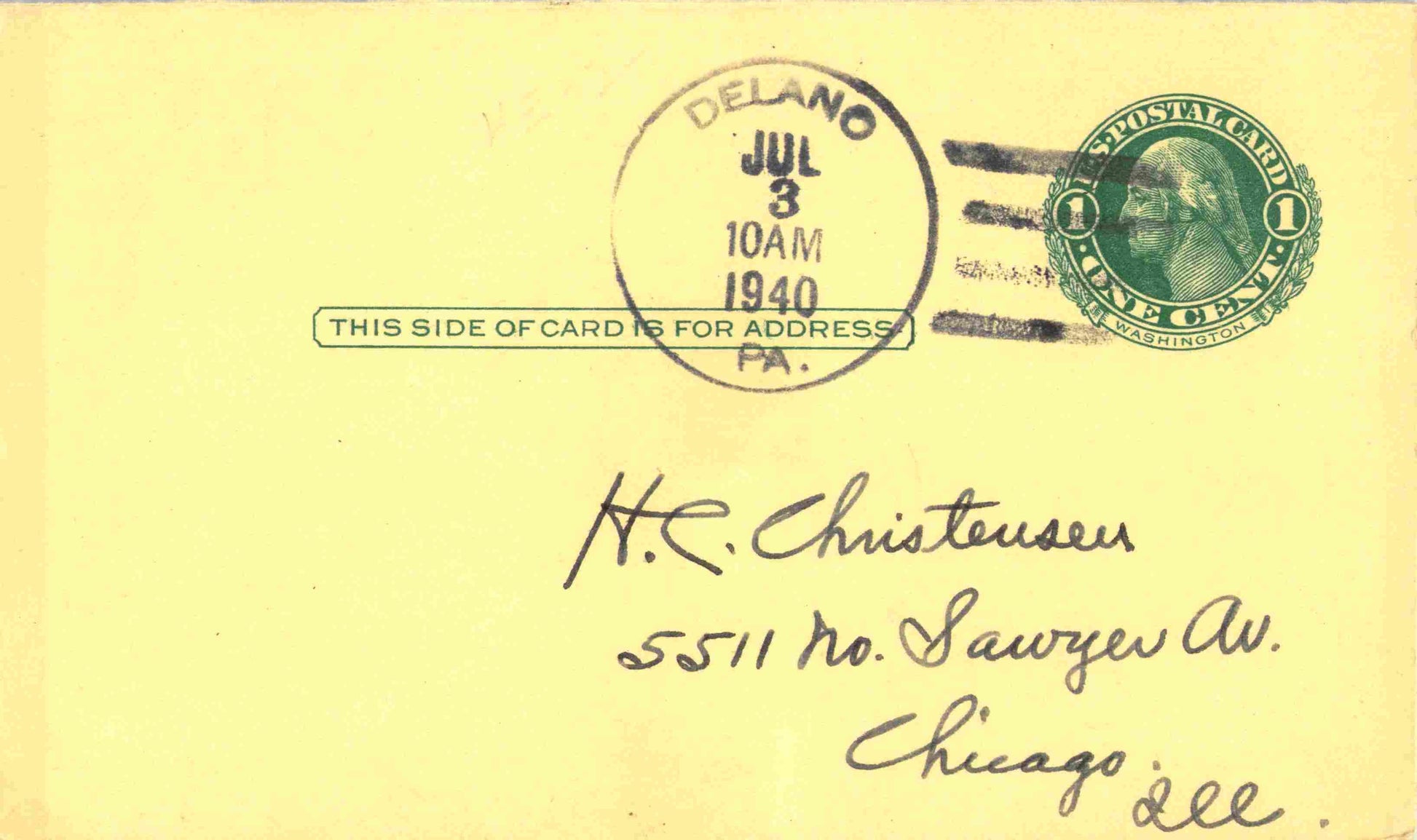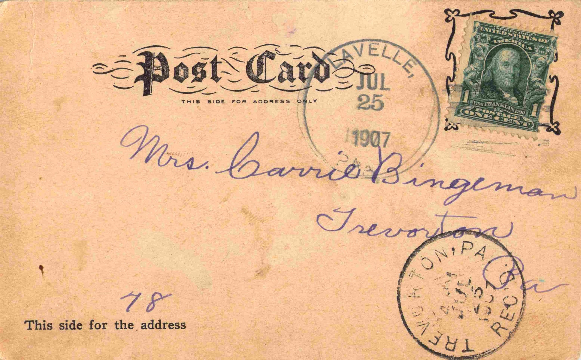 Lavelle 1907 4-bar on post card, also Treviston Rec’d