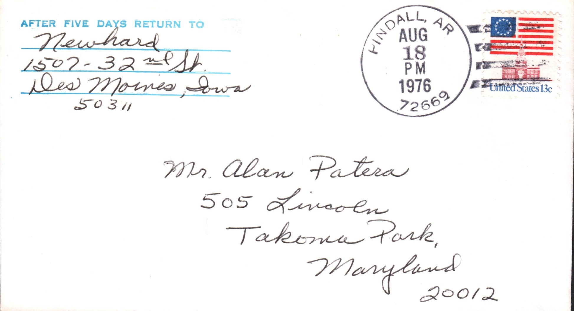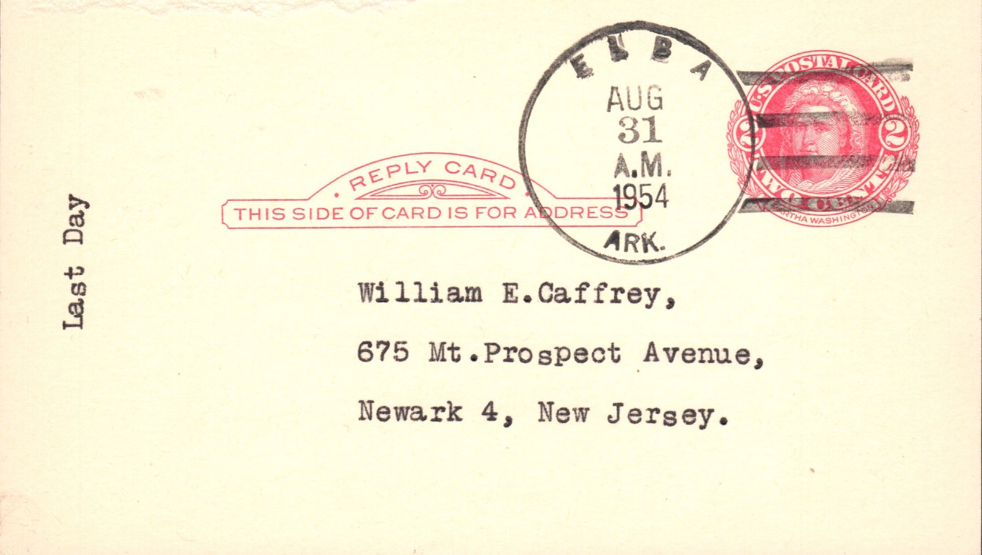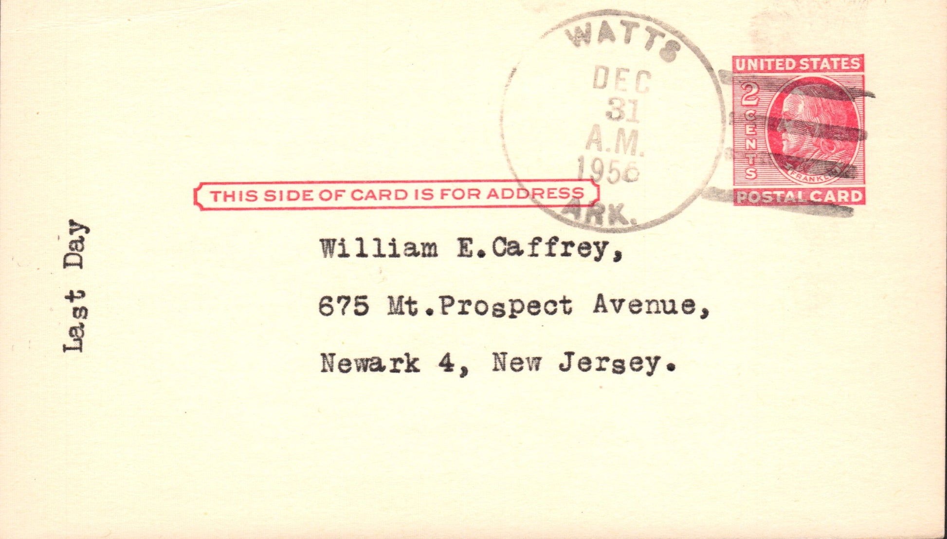 Watts (1890-1955) 1955 4-bar on LD Postal Card