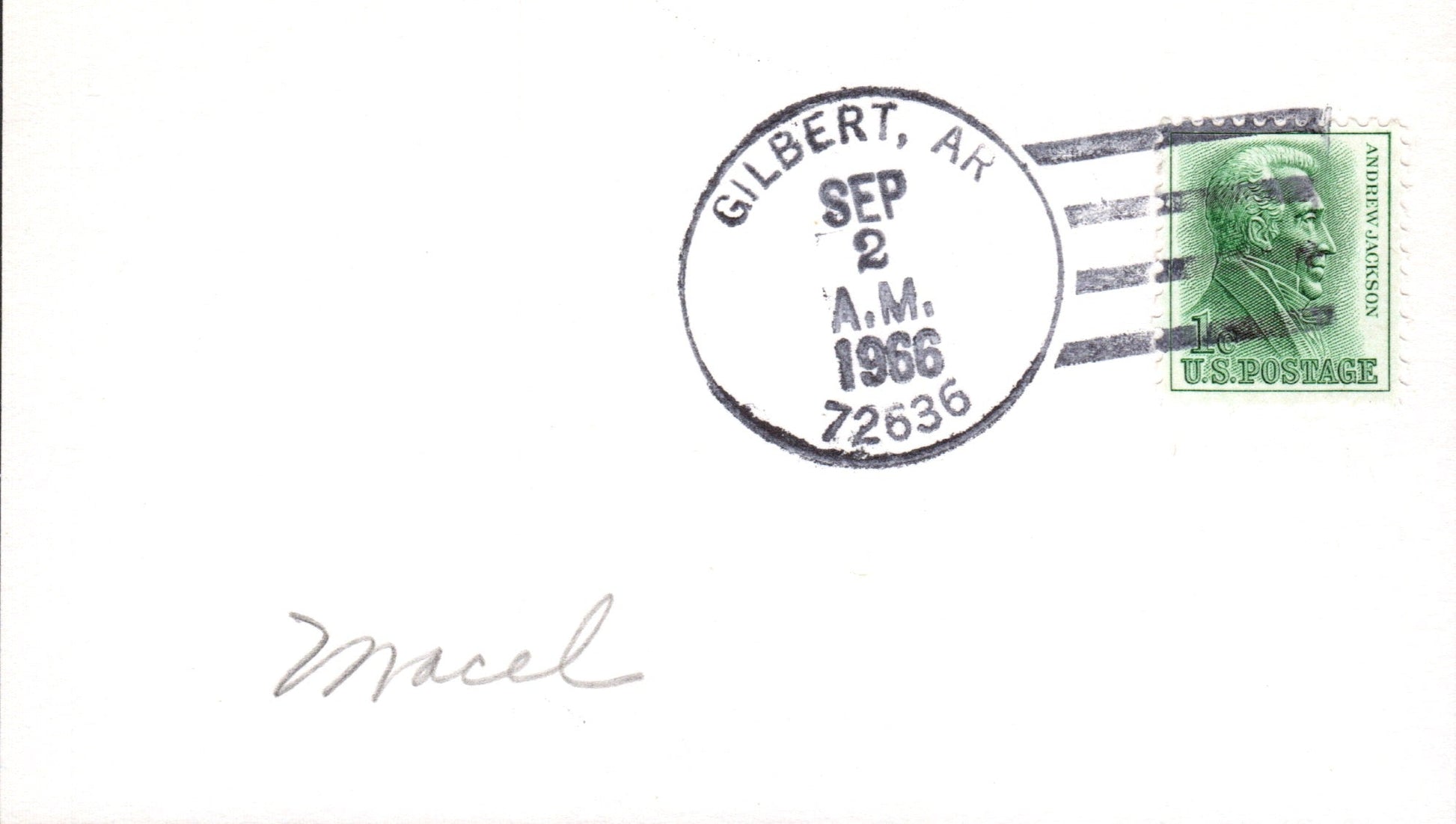 Rumley (1907-1966) 1966 4-bar on cover-sized card, PM autograph on back