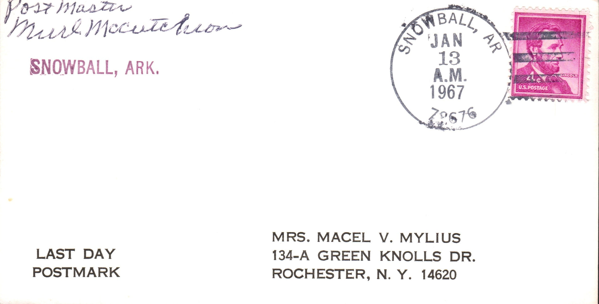 Snowball (1887-1967) 1967 4-bar on LD cover-sized card, PM autograph