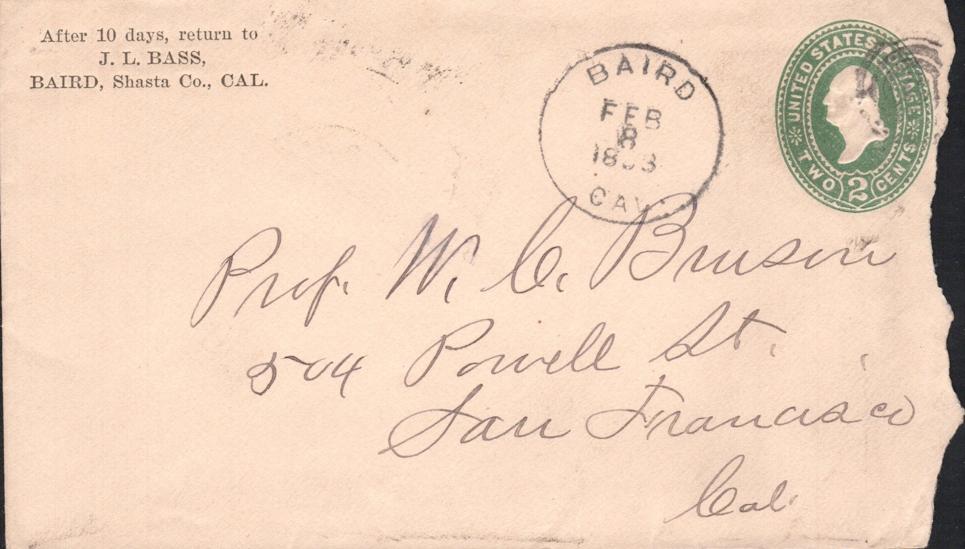 - Baird (1878-1933) 1898 cds on cover; 1910 4-bar on post card