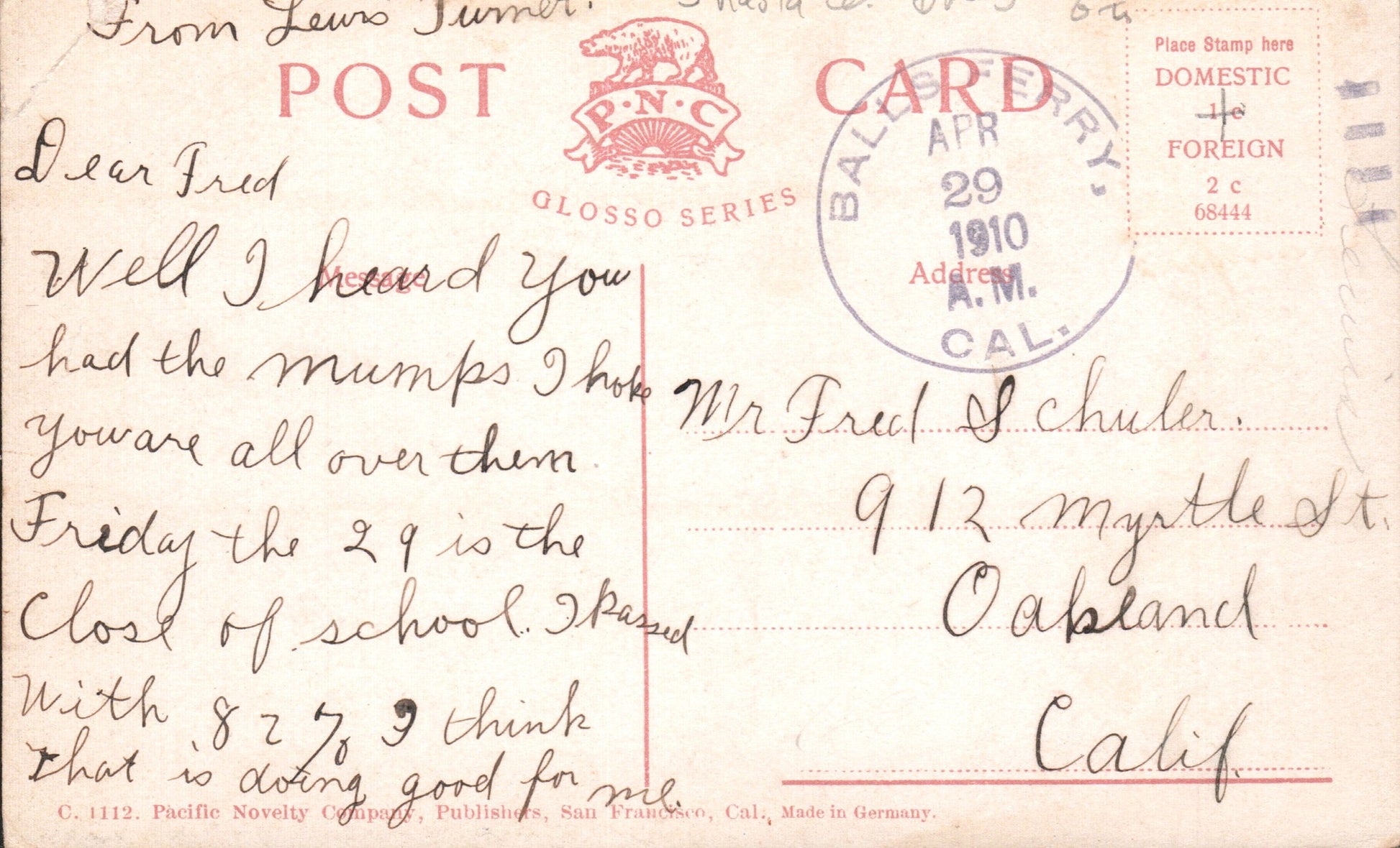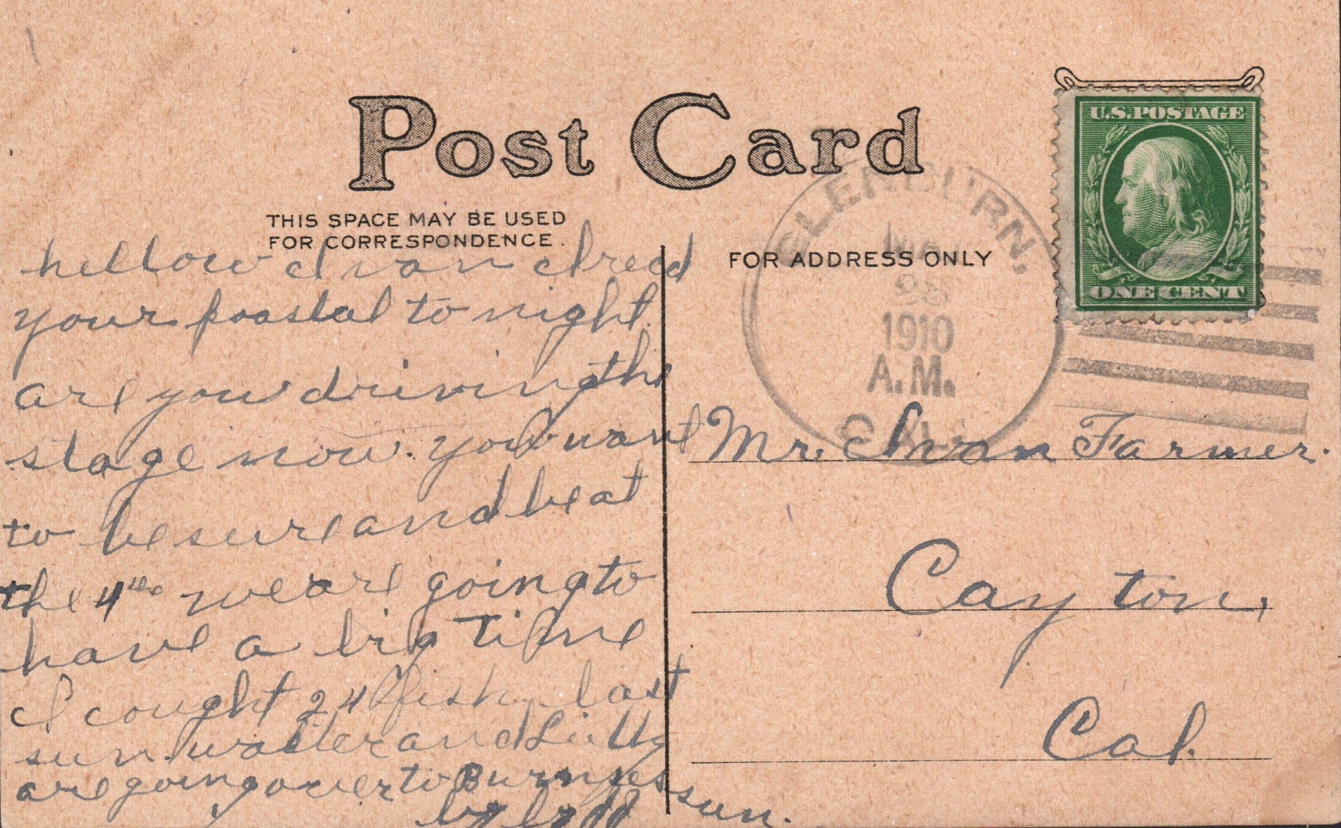 - Castella light 1907 4-bar overstruck San Francisco on post card; 1974 4-bar on post card