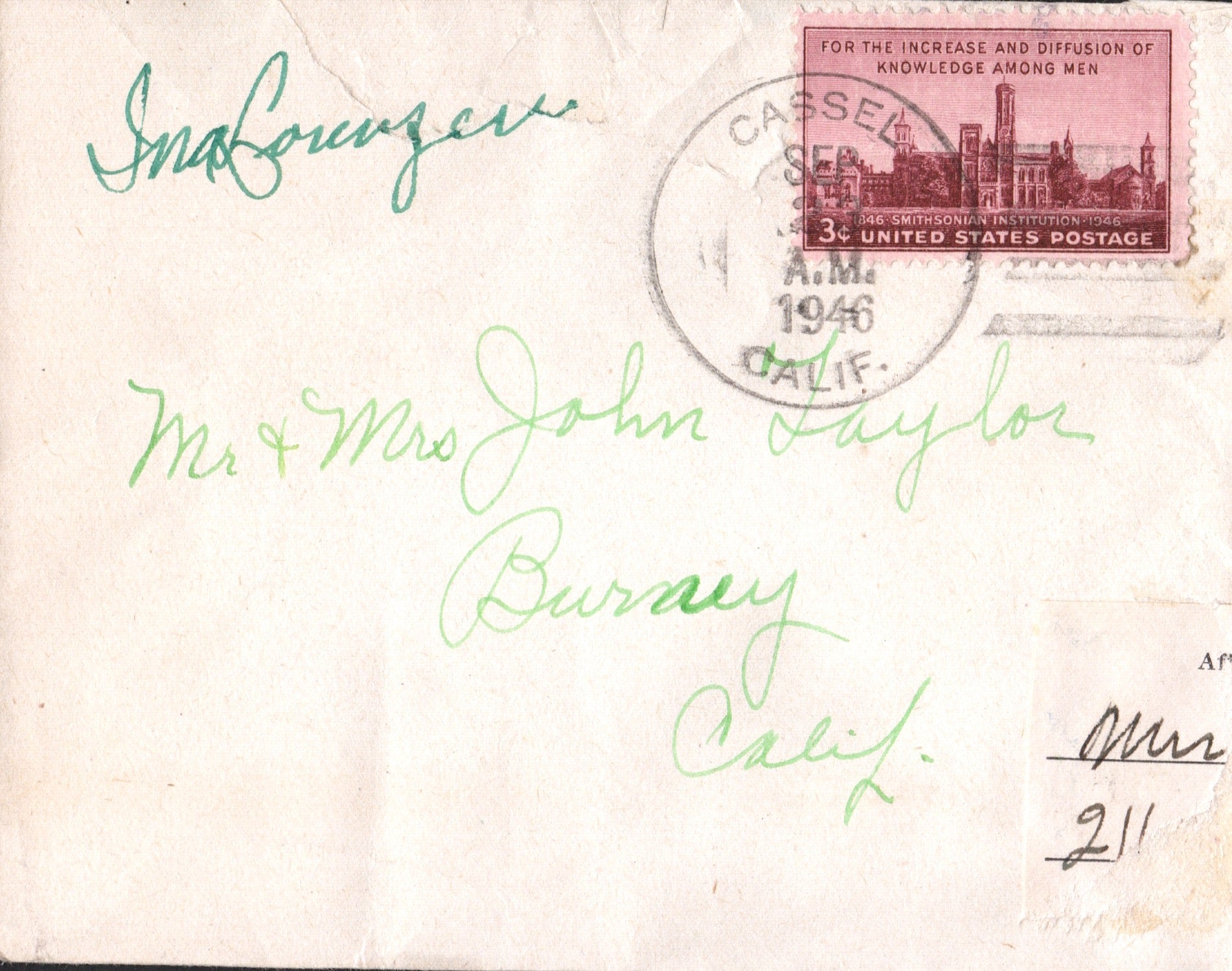 - Cassel 1946 5-bar on torn cover; poor 1966 4-bar on cover