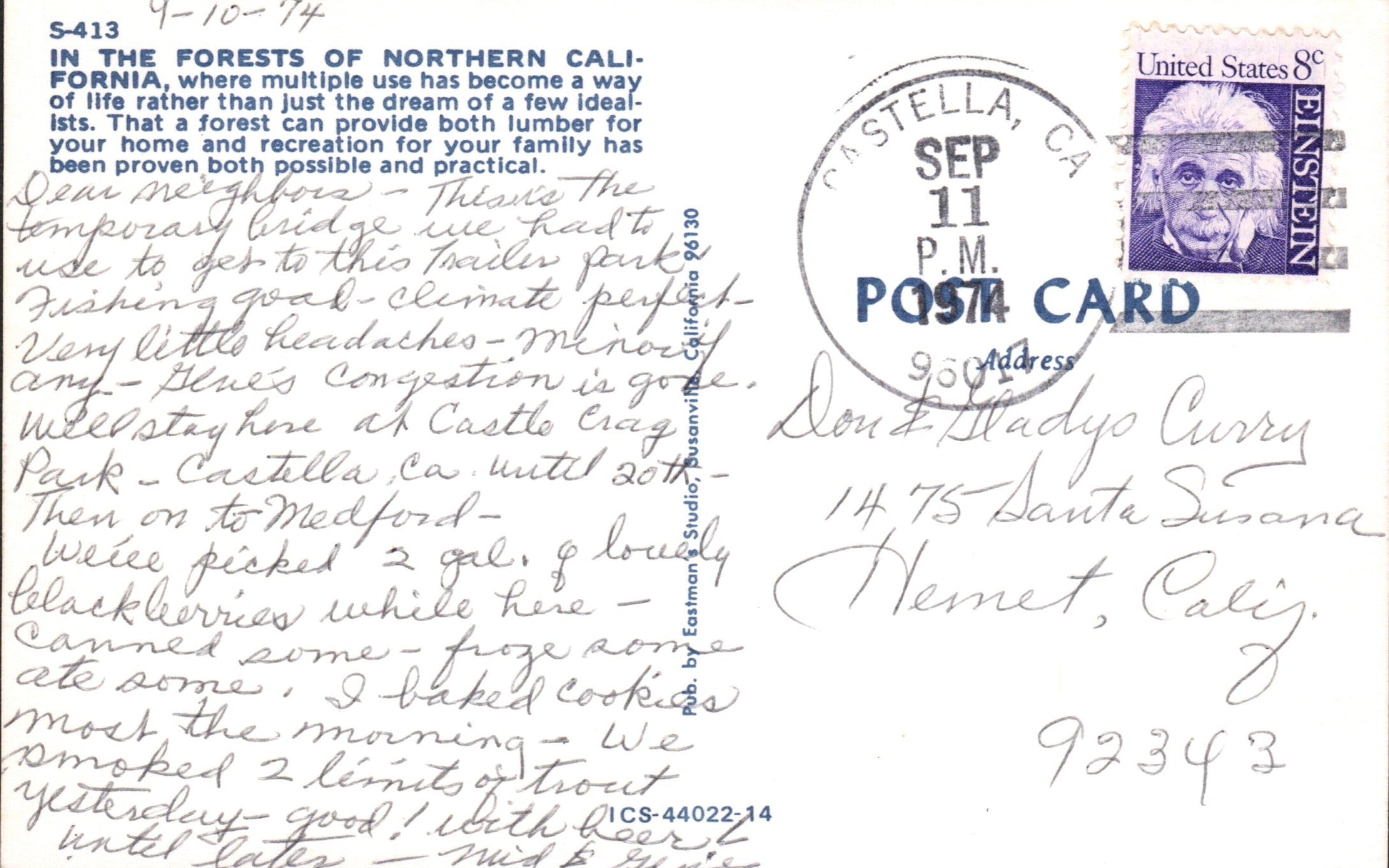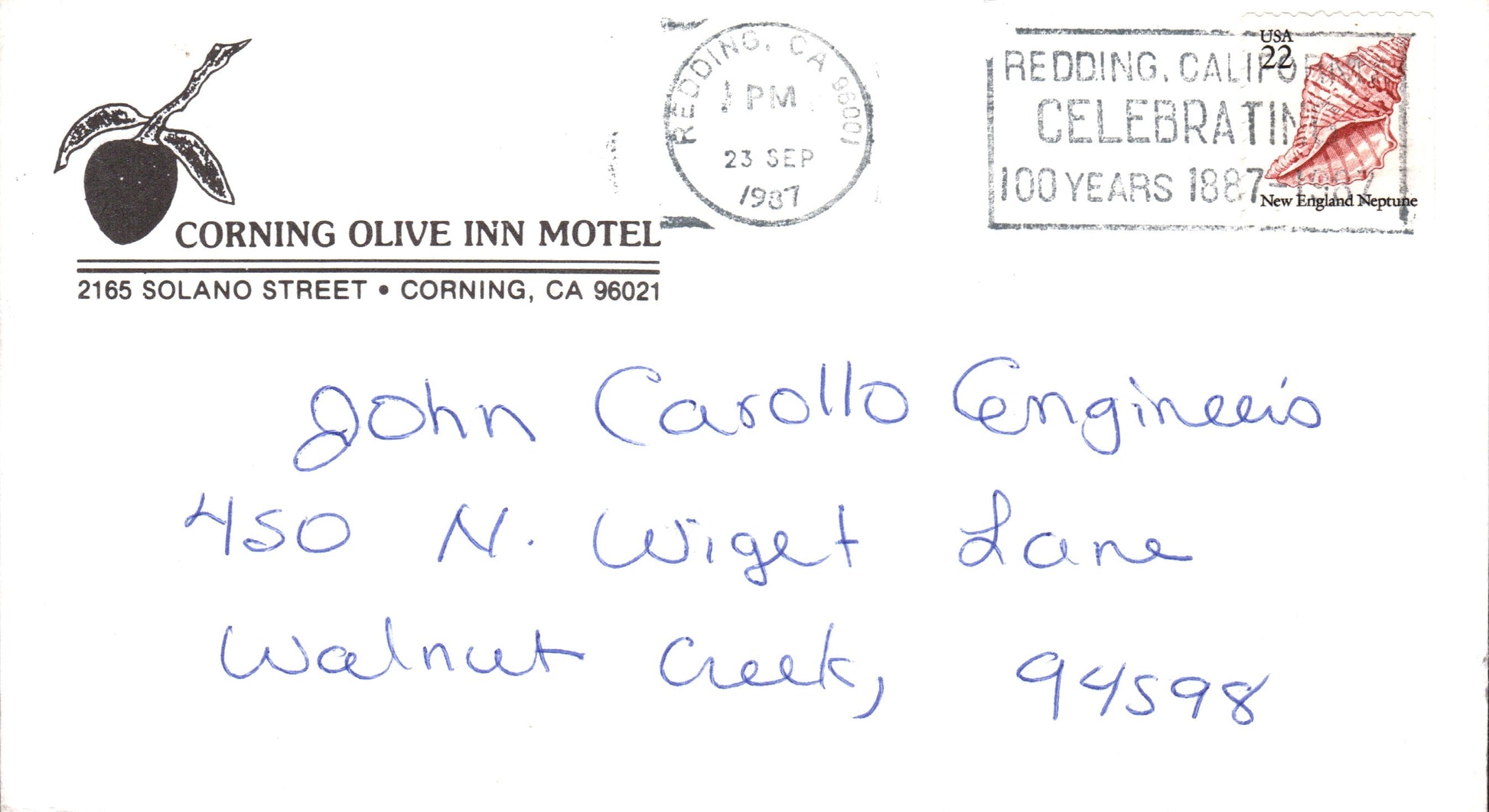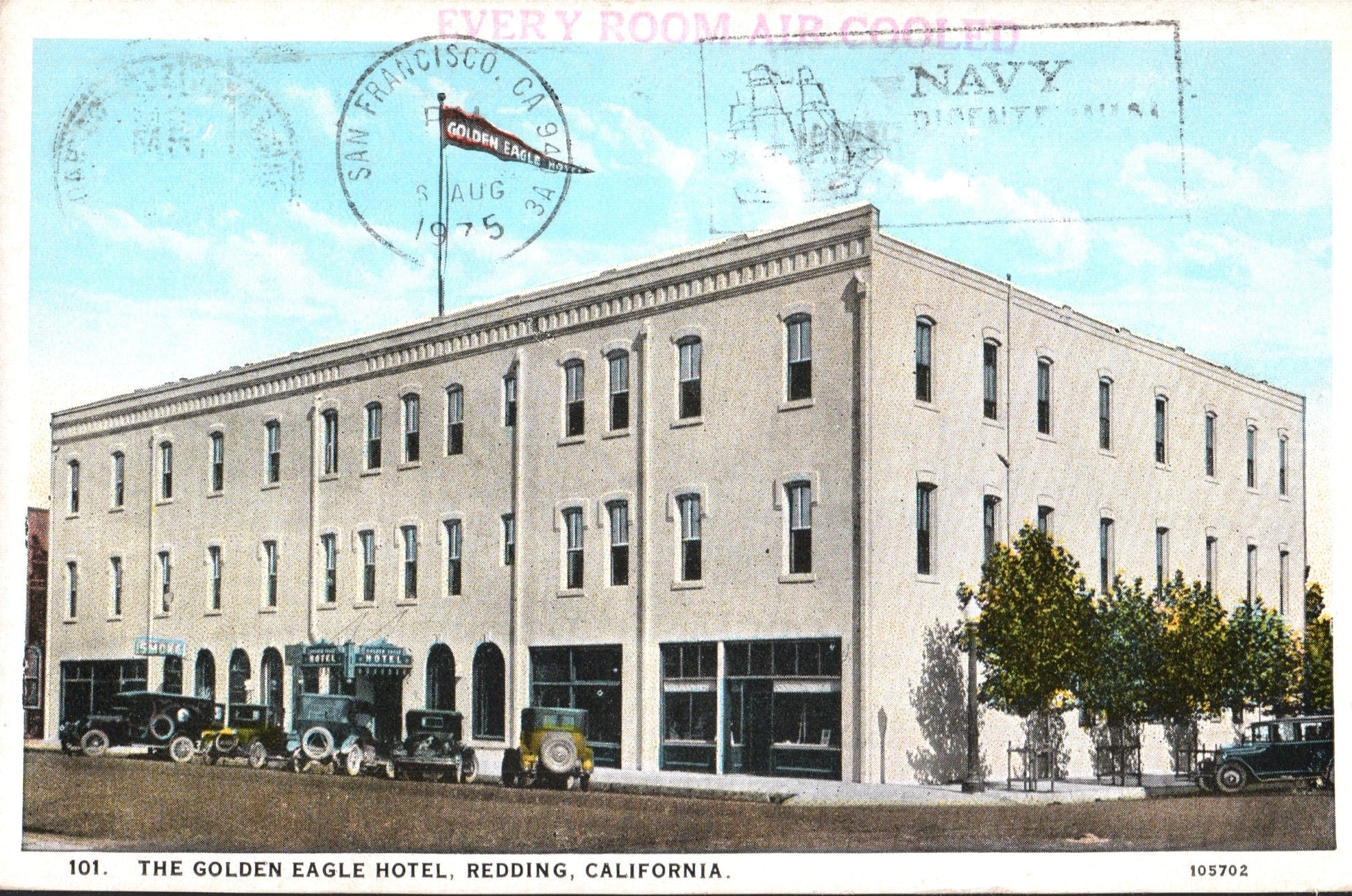 - Post cards: Golden Eagle Hotel [1920a]; Mark’s Motel [chrome]; Grand Manor Inn [chrome]; North Gate Lodge [chrome]; Redding TraveLodge [chrome]