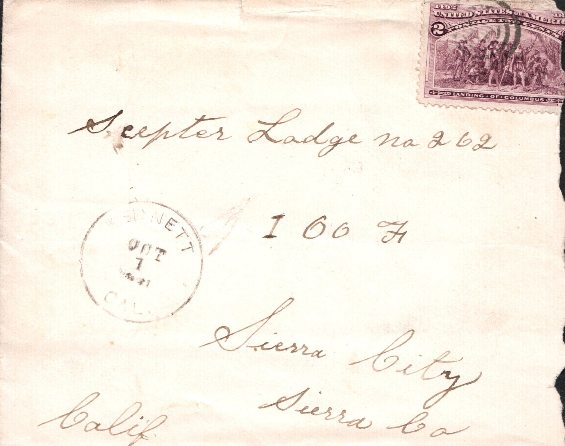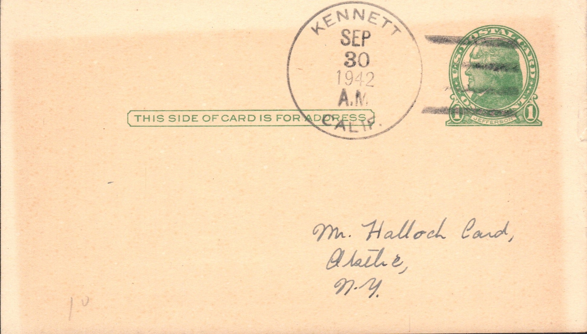 - Kennett (1886-1942) poor 1894 cds on faulty cover with original contents; 1907 Doane 5 on leather post card; 1942 4-bar on Postal Card
