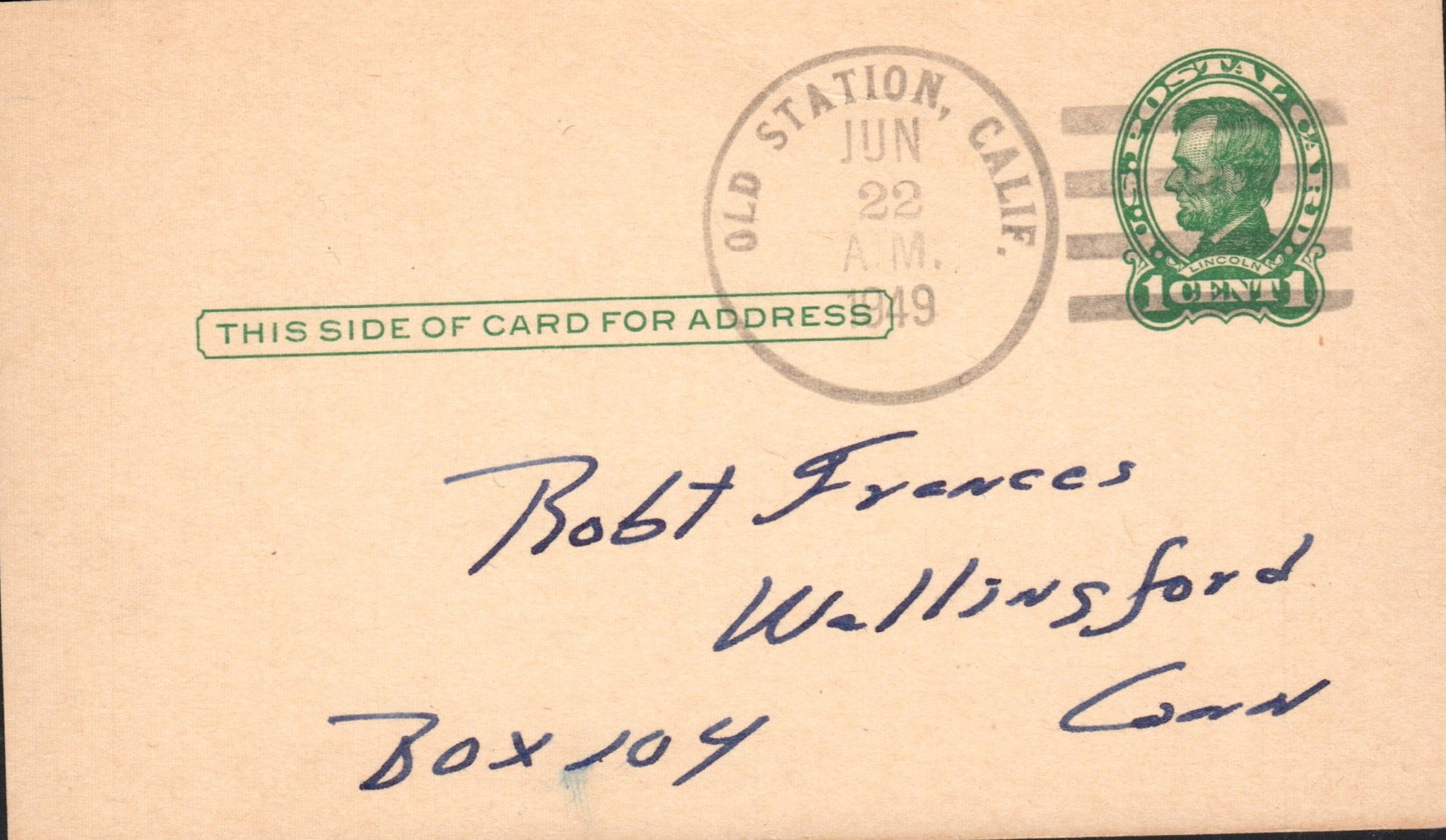 - Old Station 1949 4-bar on Postal Card; 1965 4-bar on cover