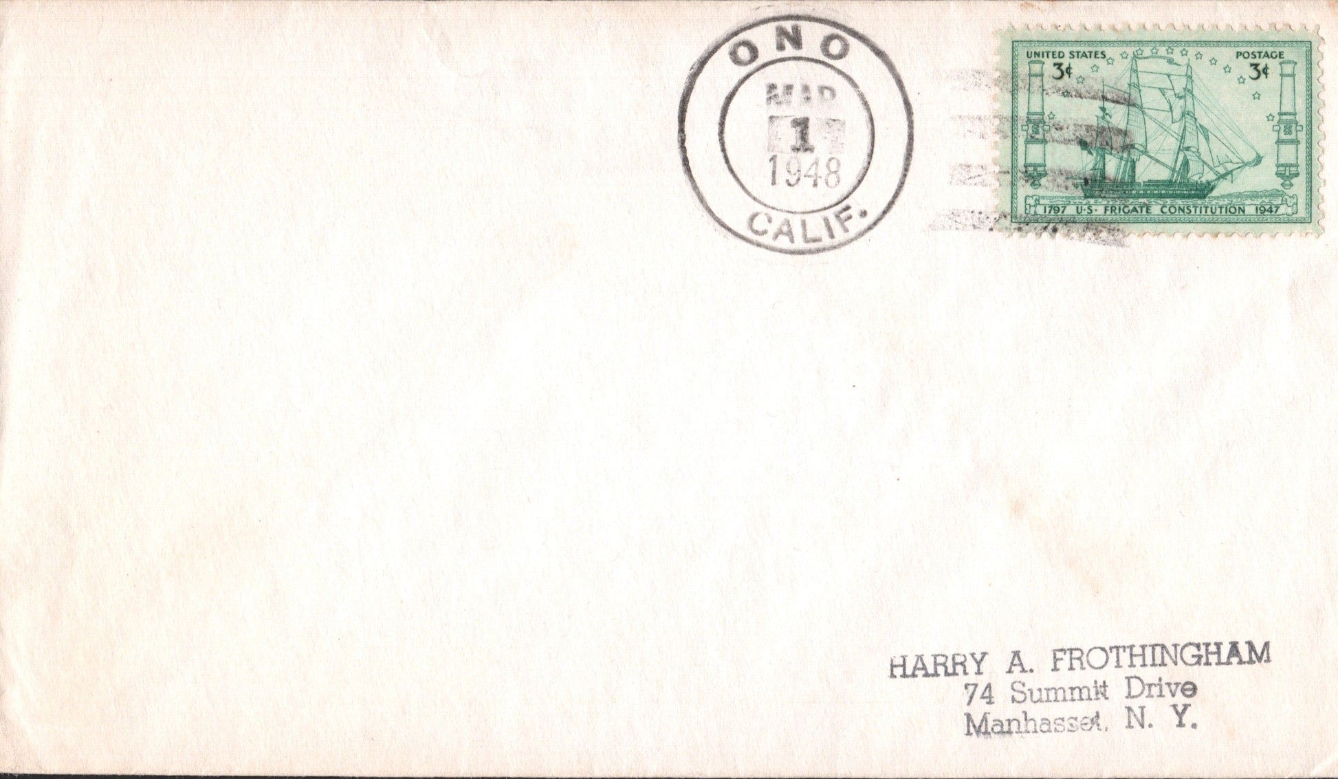 - Ono (1883-1963) 1911 duplex on post card; 1948 double-circle 4-bar on cover