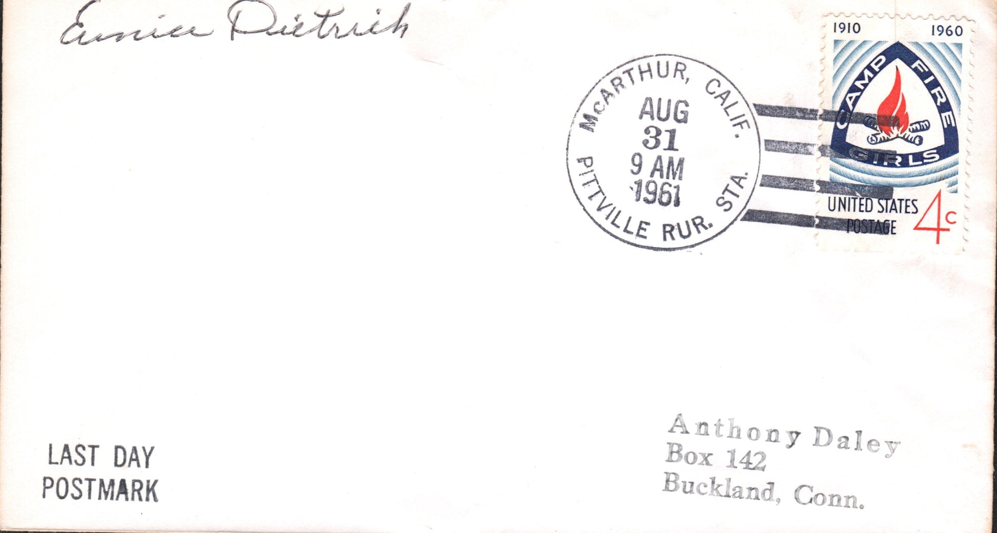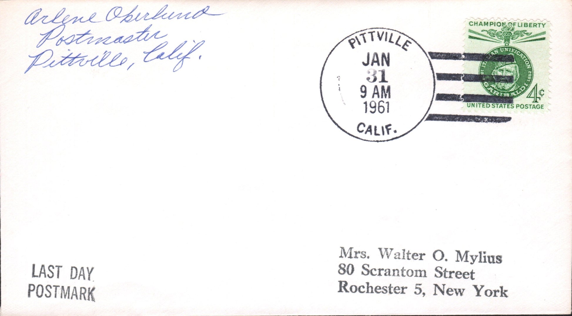- Pittville RS (Feb.1, 1961 to August 31, 1961) 1961 4-bar on LD cover, clerk-in-charge autograph