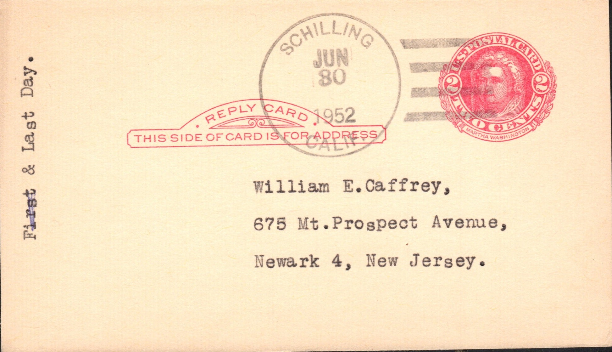 - Schilling (1917/1952) 1952 4-bar on LD Postal Card