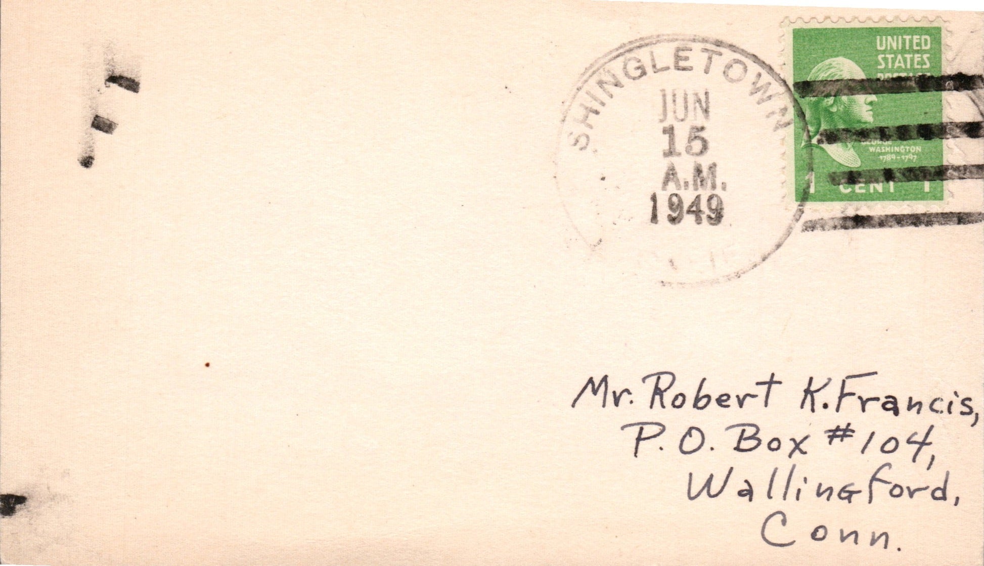 - Shingletown 1949 4-bar on 3x5 card; 1965 4-bar on cover