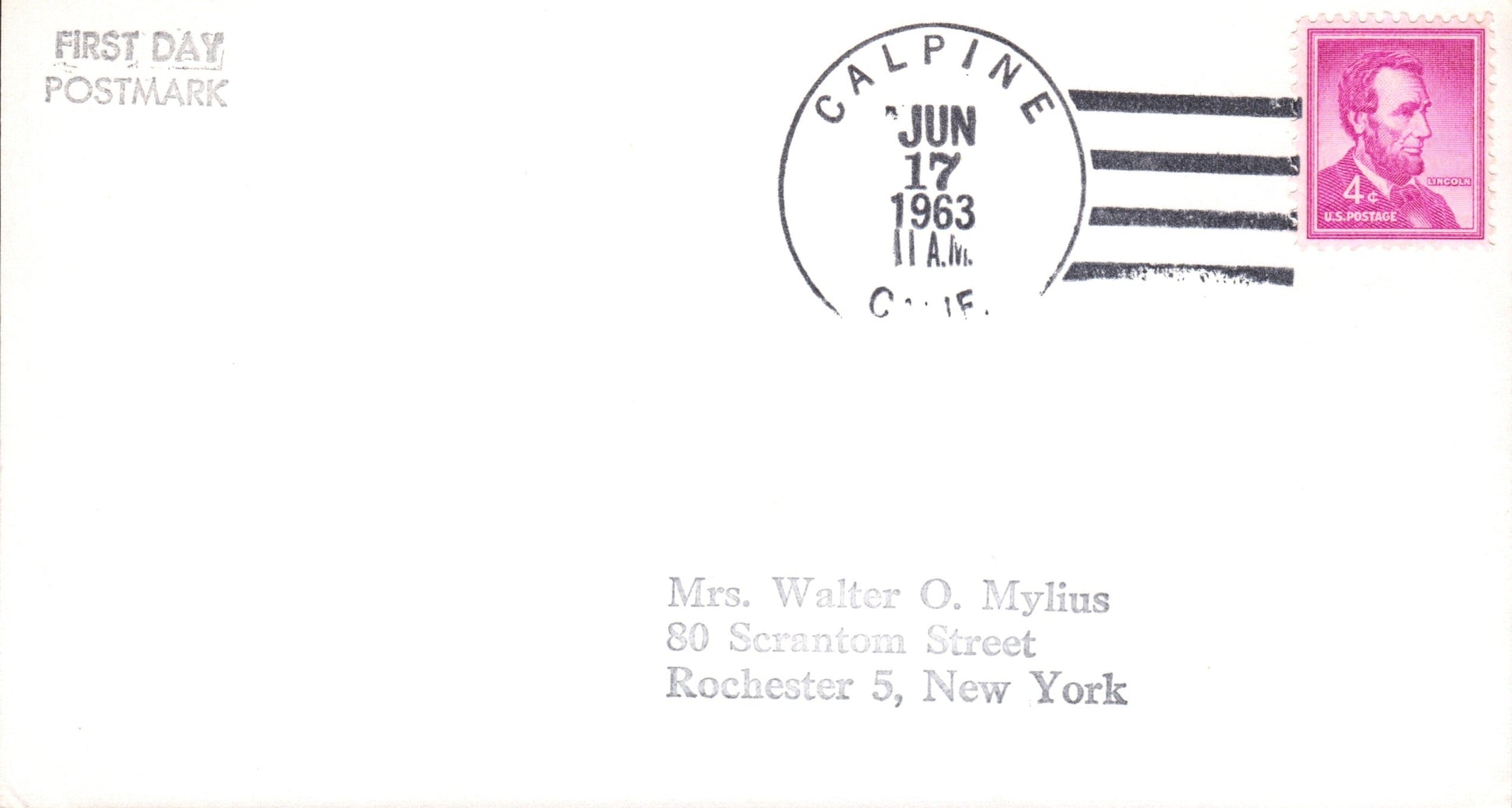 Calpine RB (1963-1990) 1963 4-bar non cover-sized card, first day as Rural Branch; 1966 4-bar on cover