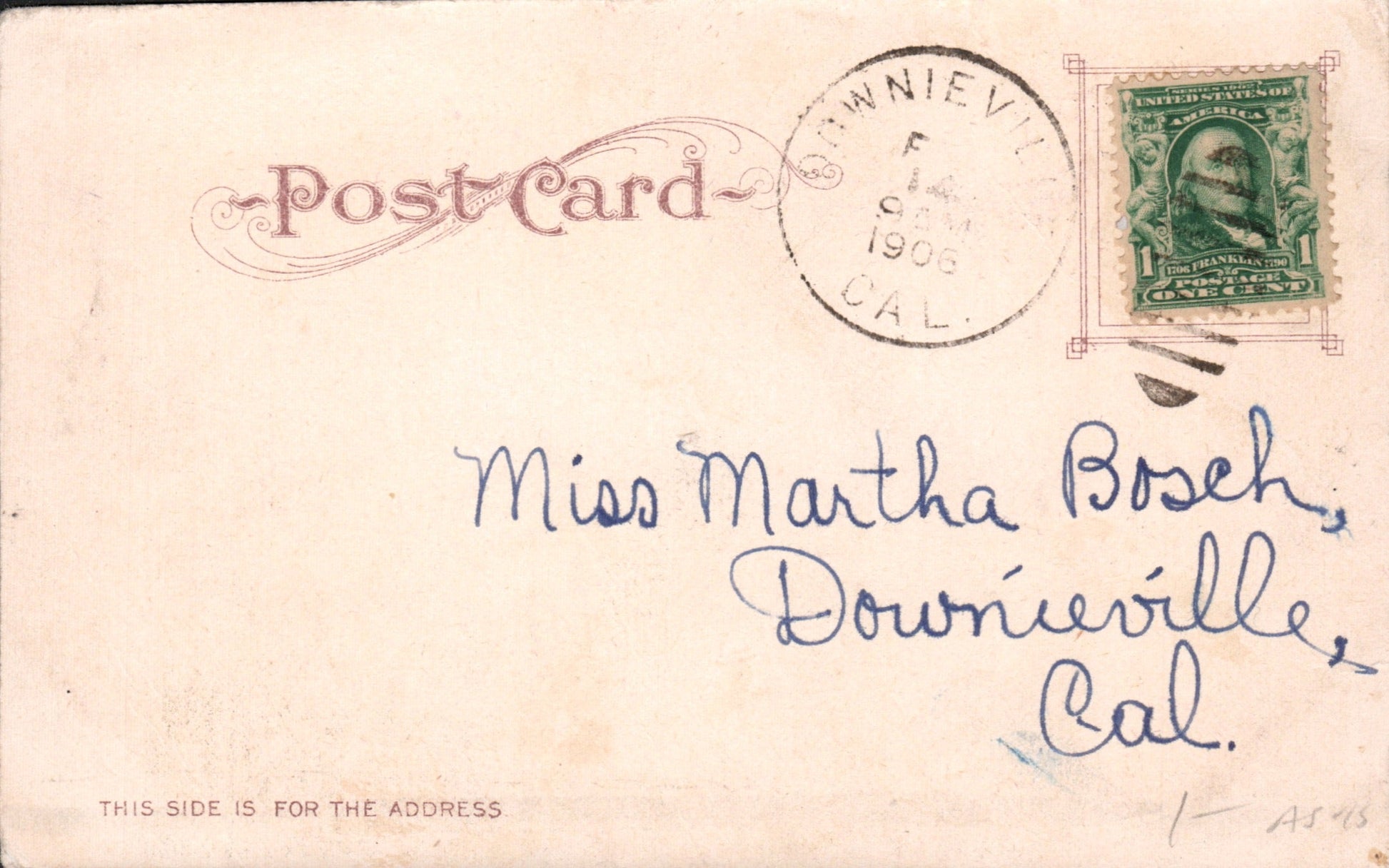 Downieville 1885 double circle & target killer on cover1906 duplex on post card