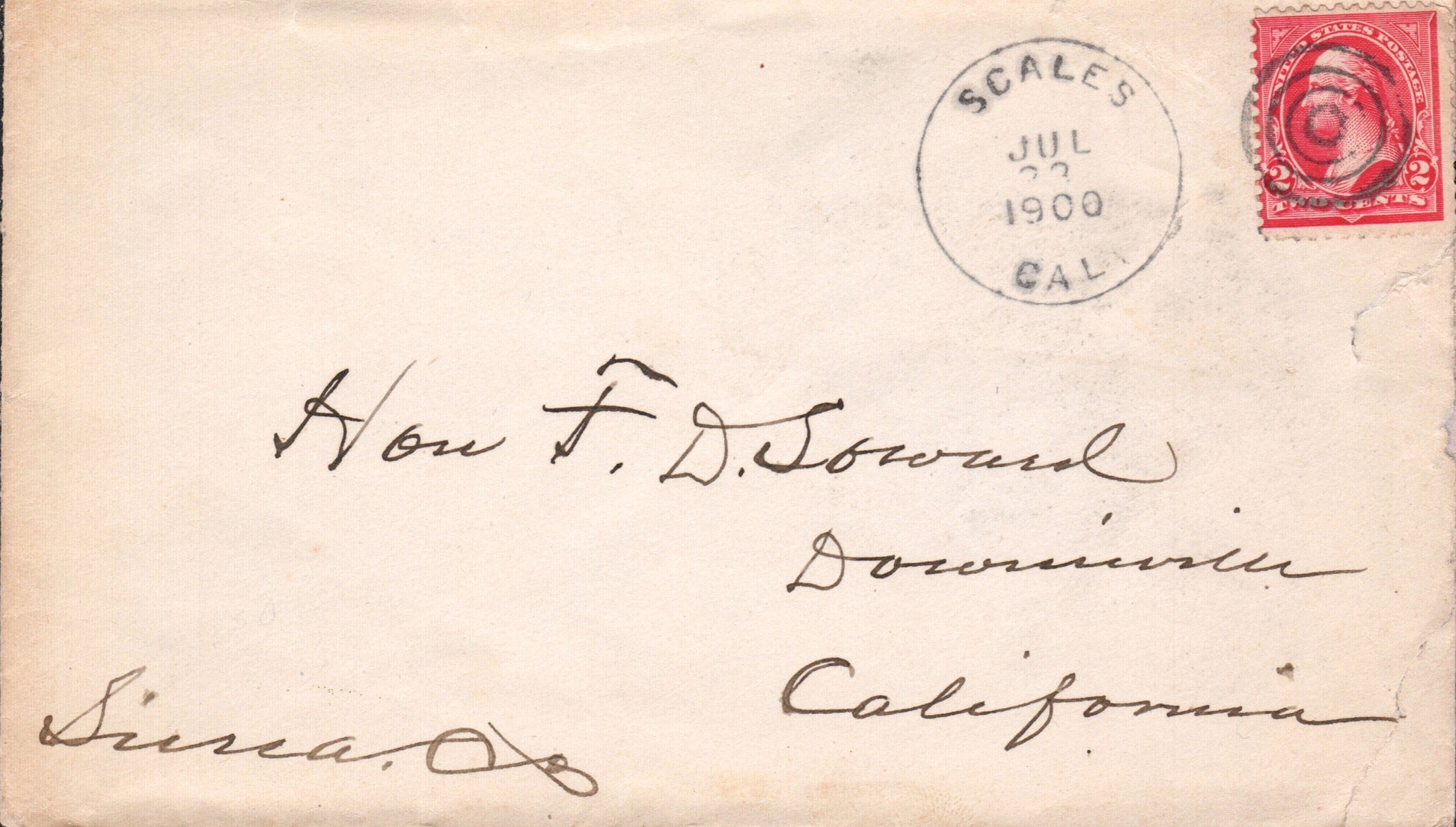 Scales (1880-1923) Fine 1900 cds and target killer on cover to Downieville