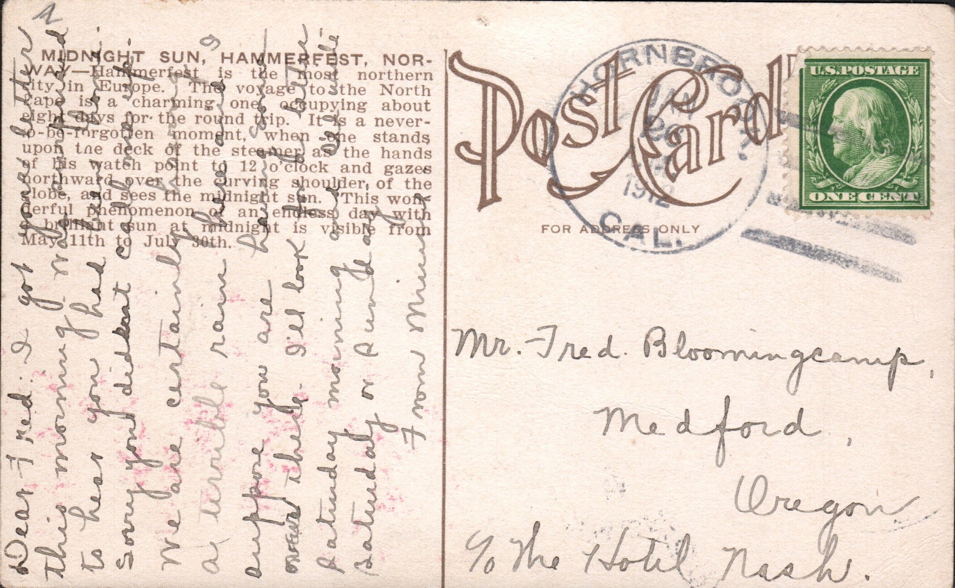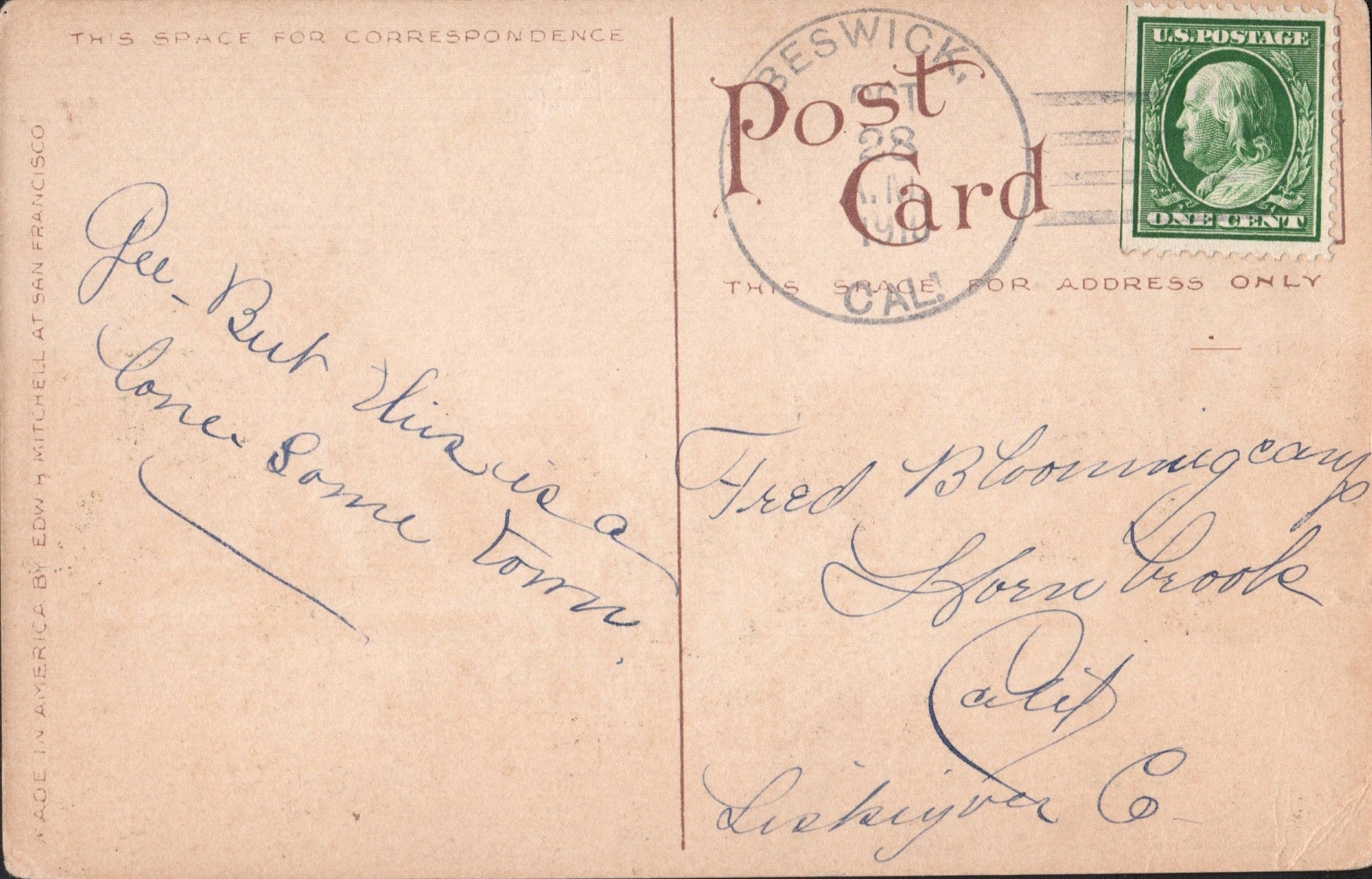 - Hornbrook 1907 duplex on post card; 1912 4-bar on post card