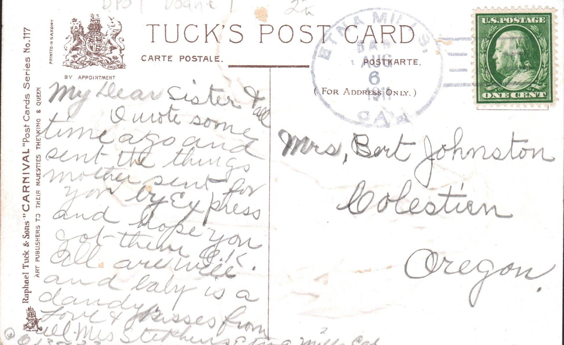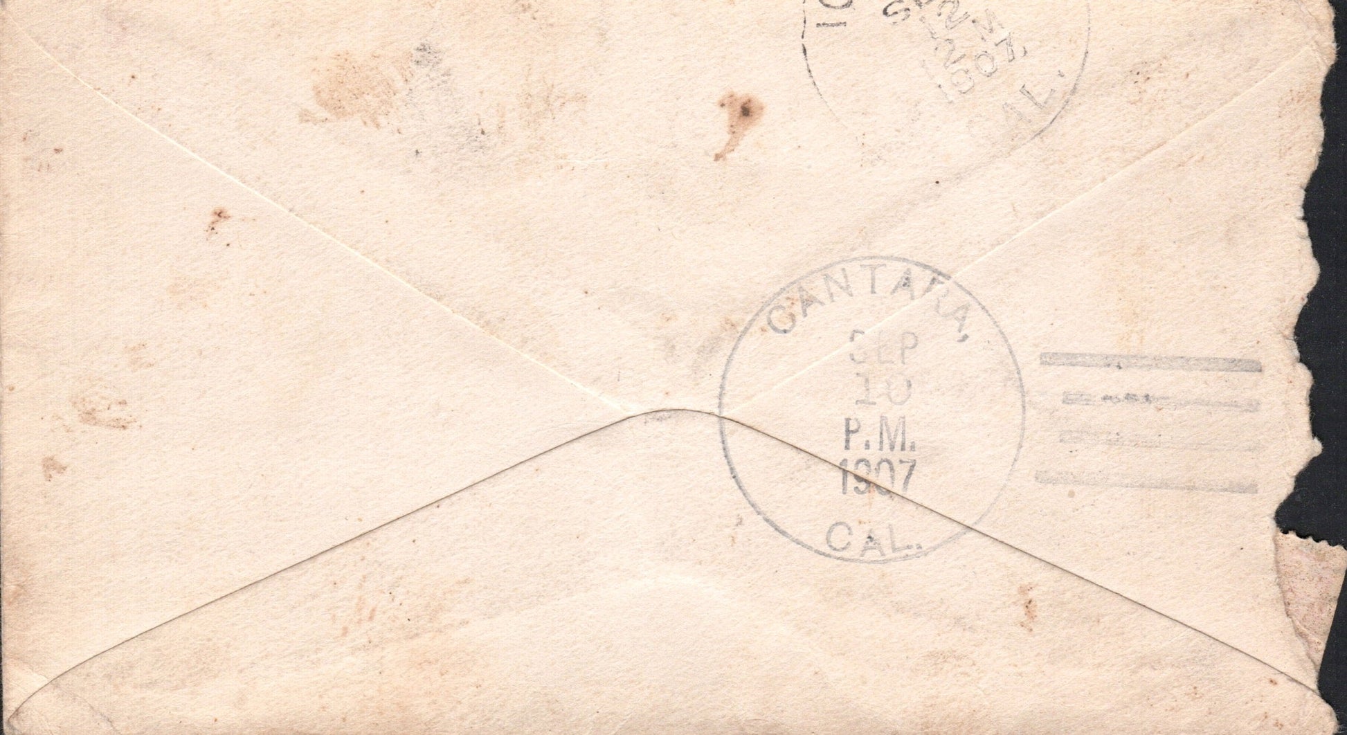 - Cantara (1902-1916) 1907 4-bar backstamp on cover from Phoenix, Ore. [duplex]