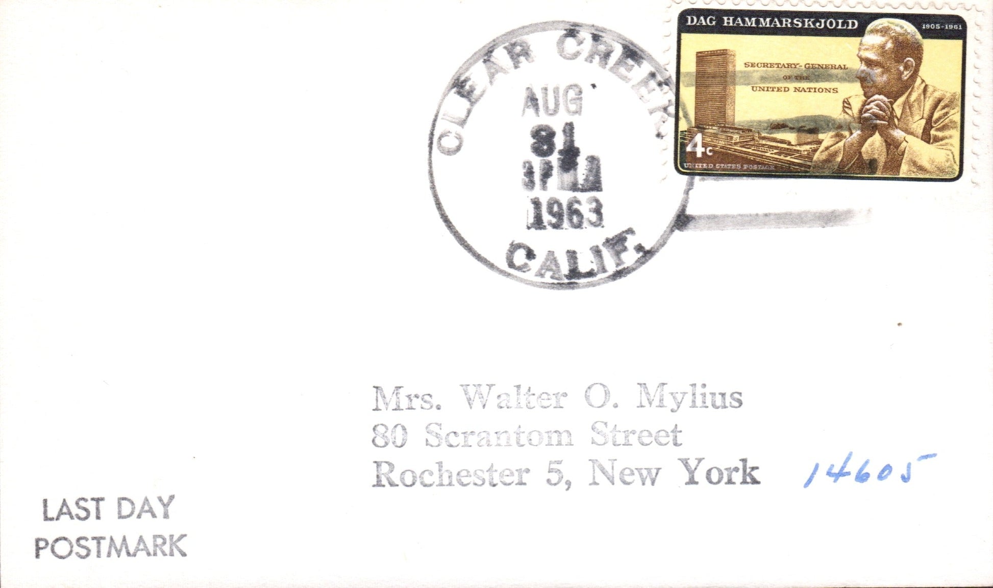 - Clear Creek (1934-1963) 1963 4-bar on LD 3x5 card, PM autograph on back