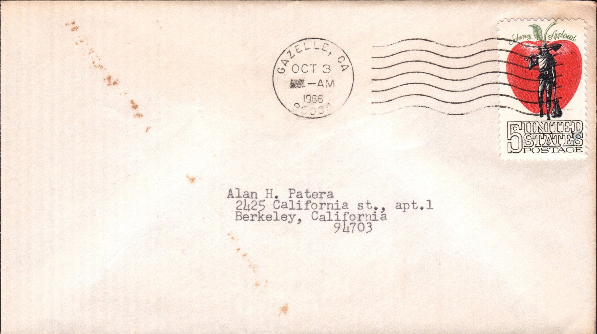 - Gazelle 1909 4-bar on post card; 1966 machine cancel on cover