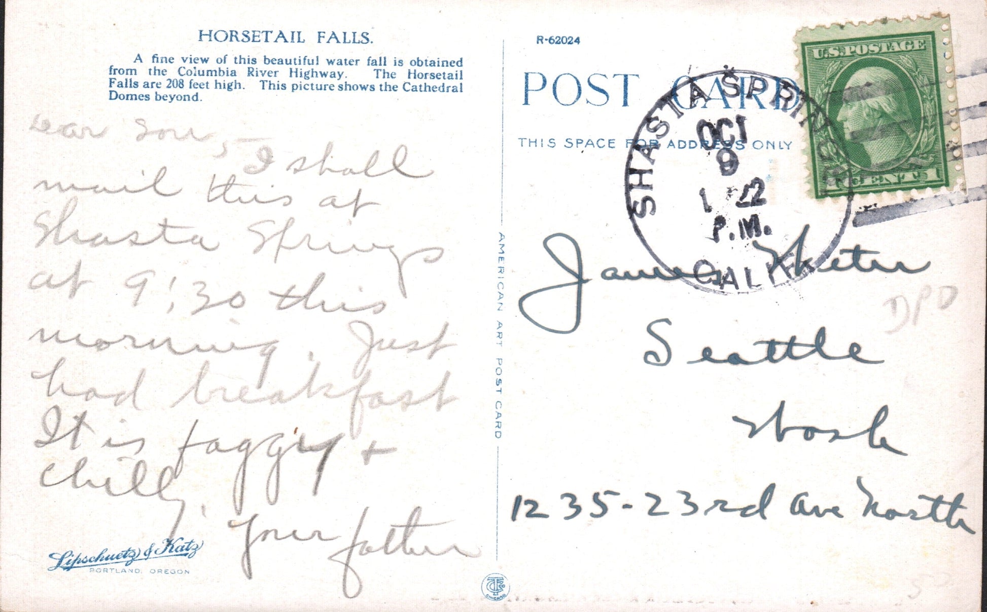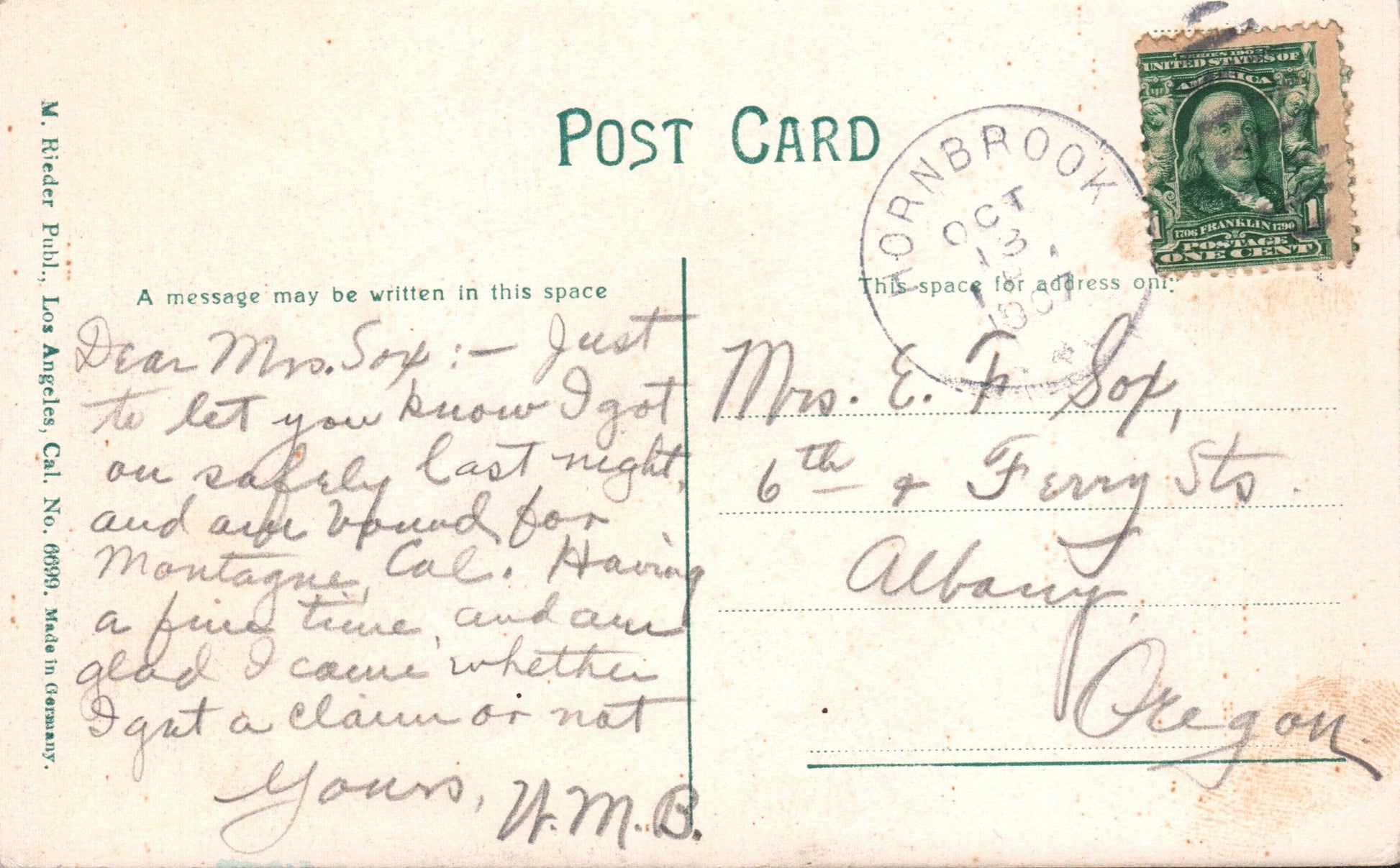 - Little Shasta (1888-1920) 1911 Doane 2 on post card