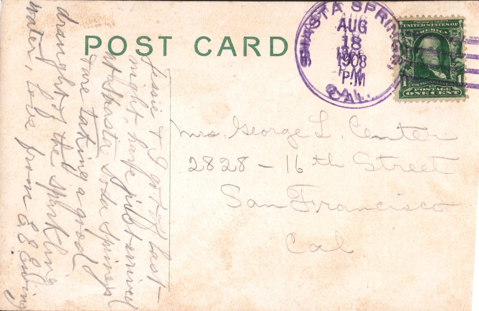 - Shasta Springs (1892-1935) 1908 4-bar on post card; 1922 4-bar on post card