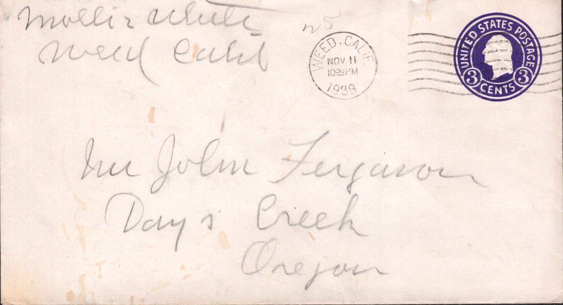 - Weed 1938 machine cancel on cover; 1971 machine cancel on cover
