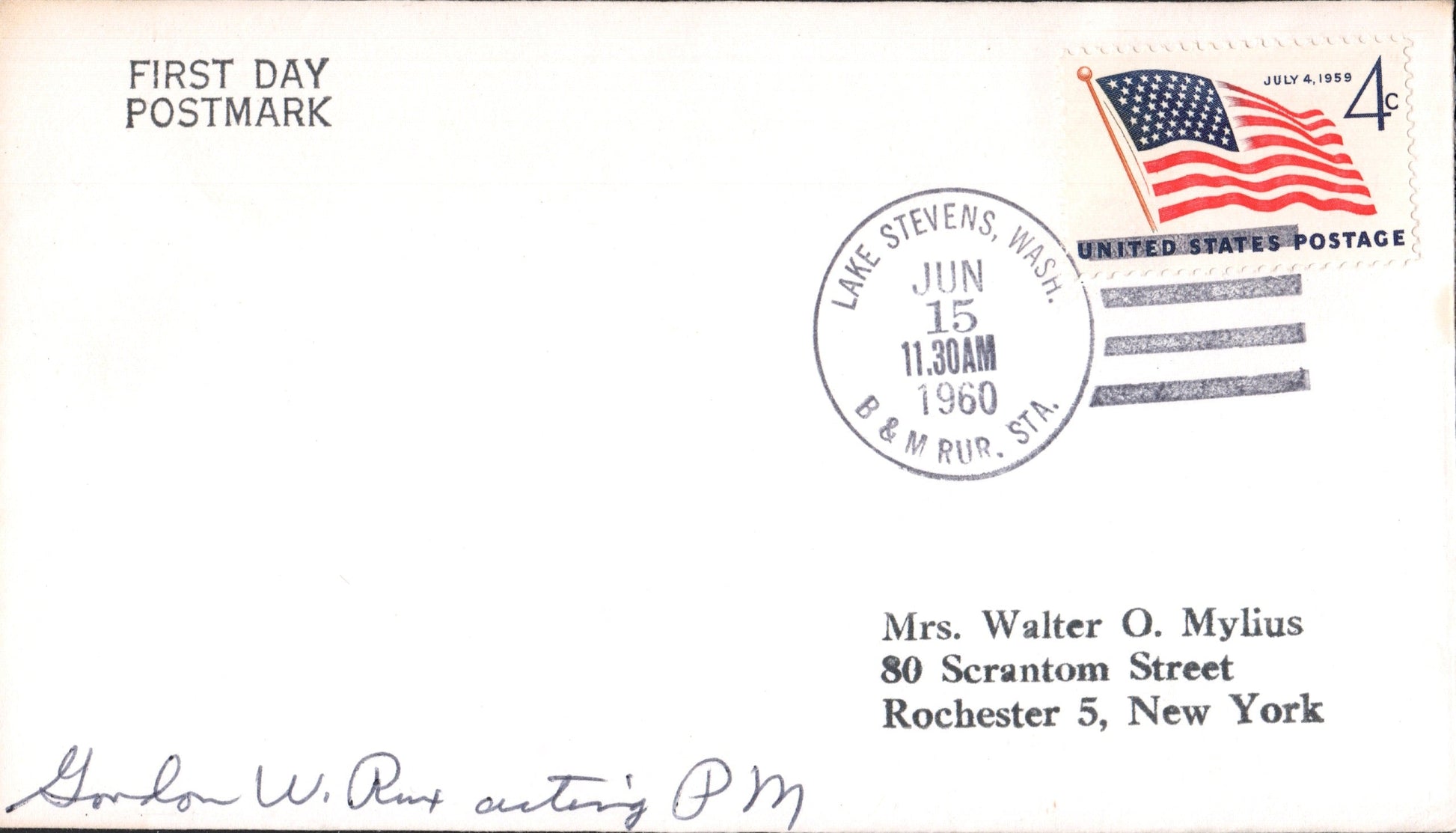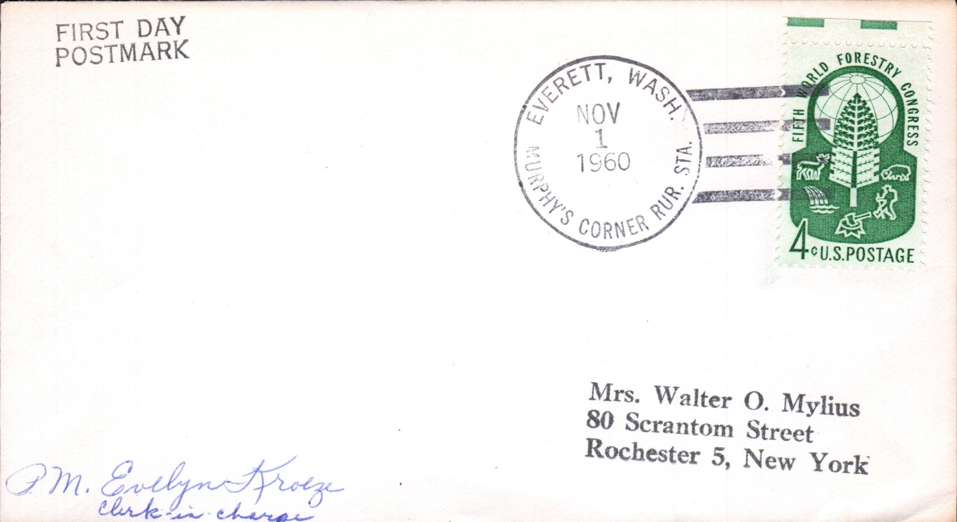- Murphy’s Corner RS (Everett) (1960-1964) 1960 4-bar on FD (of office) cover, Clerk-in-Charge autograph
