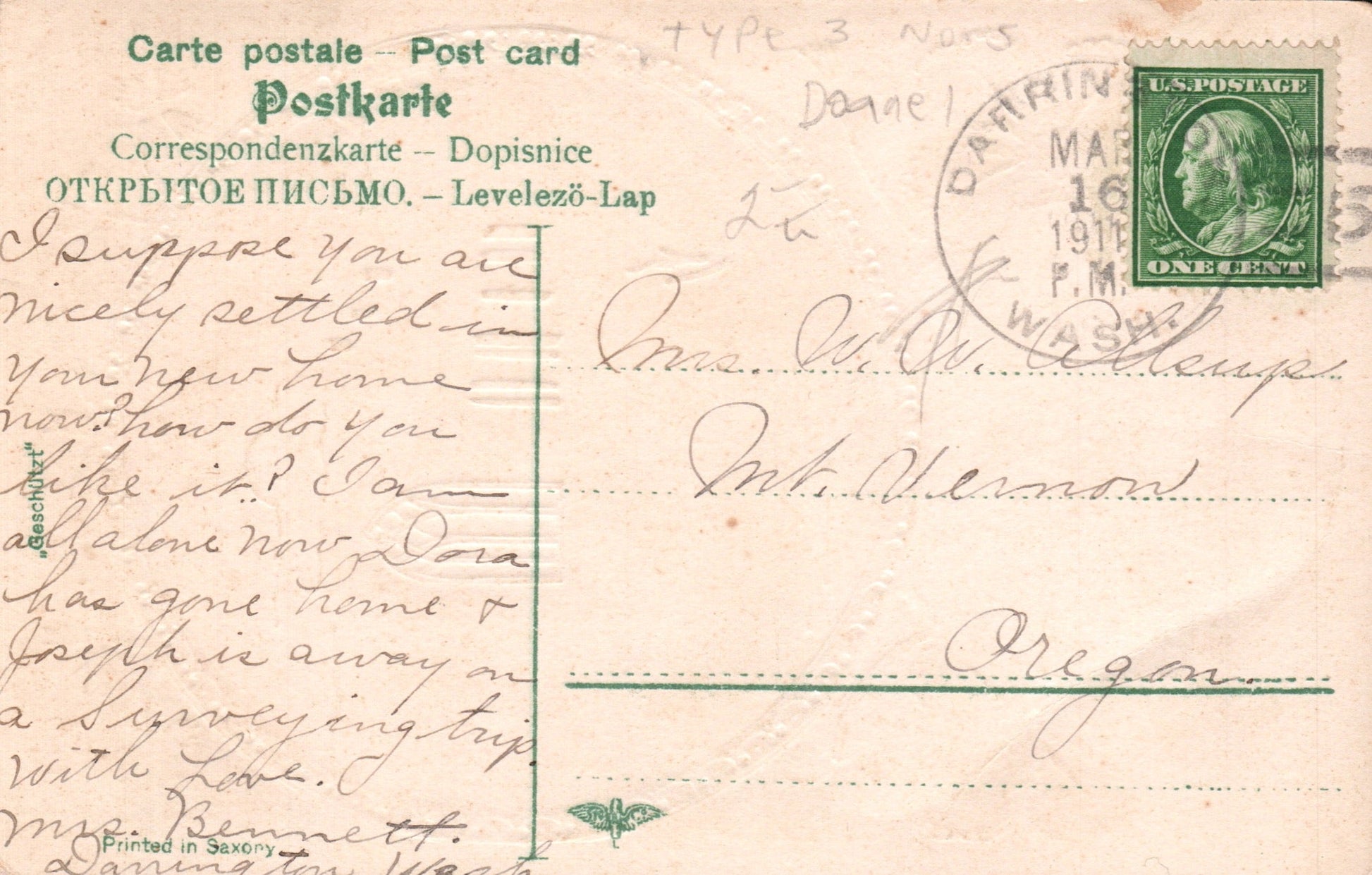 - Darrington 1911 Doane on post card