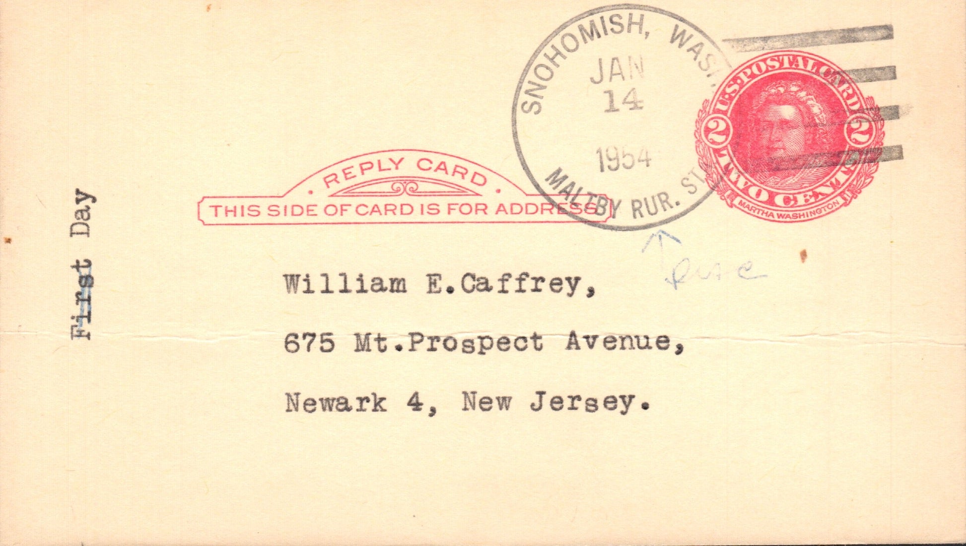 - Maltby RS (Snohomish) (1953-1962) 1953 4-bar on Postal Card