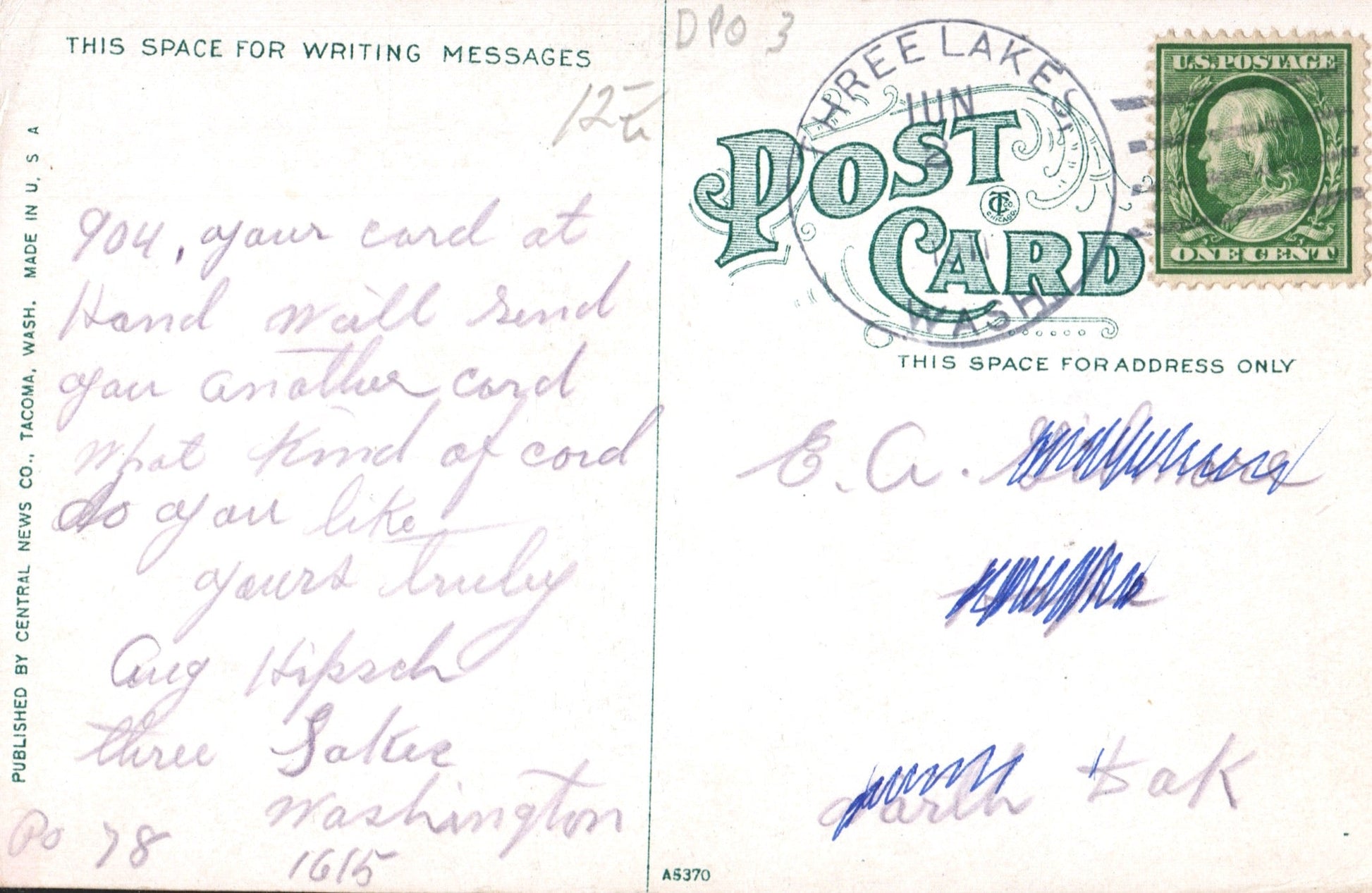 - Three Lakes (1903-1926) 1911 Doane on post card