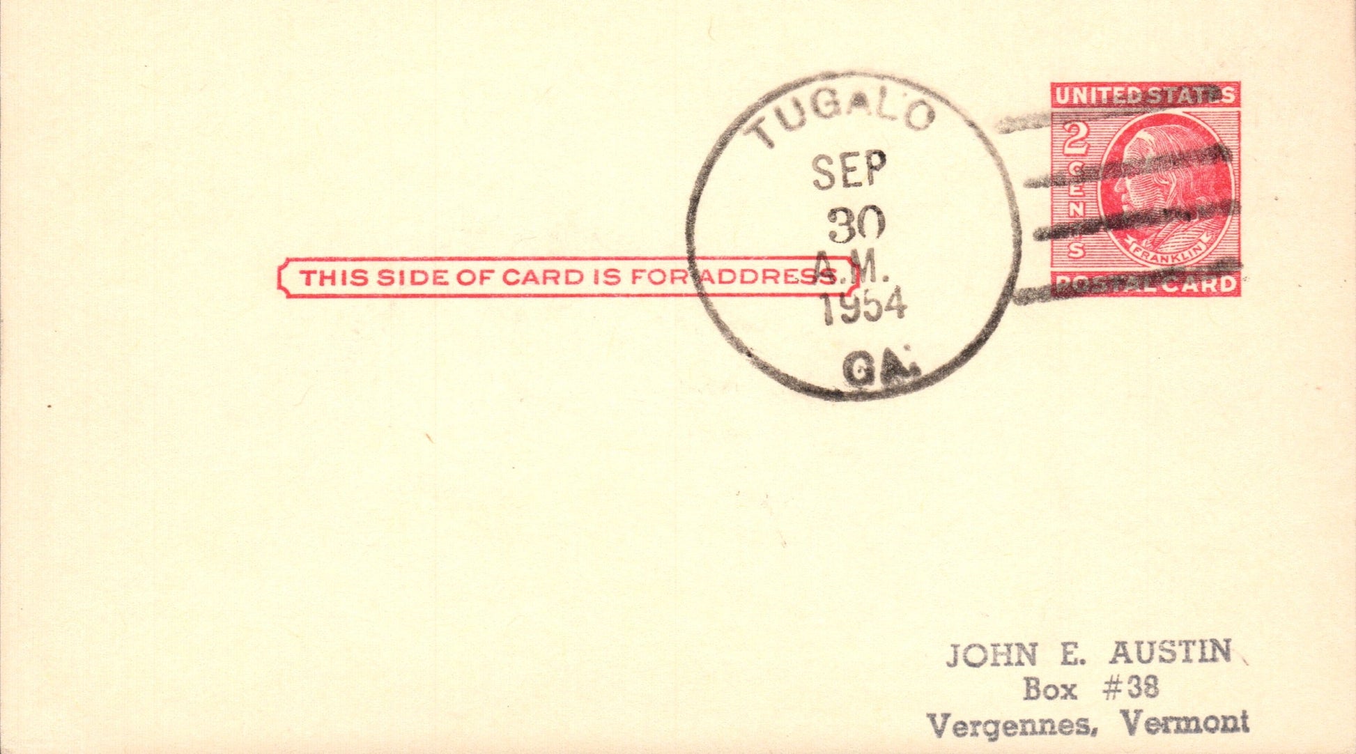 - Tugalo (1874-1957) 1954 4-bar on Postal Card