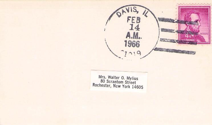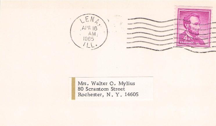 Lena 1909 duplex on post card; 1965 machine cancel on 3x5 card