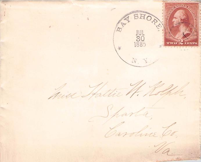 - Bay Shore 1885 cds (2 stars within circle) on cover w/ contents