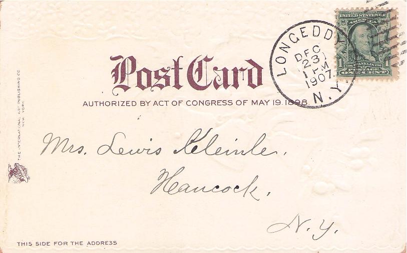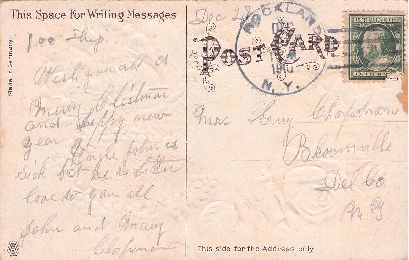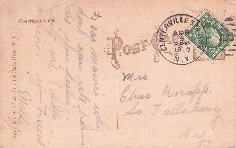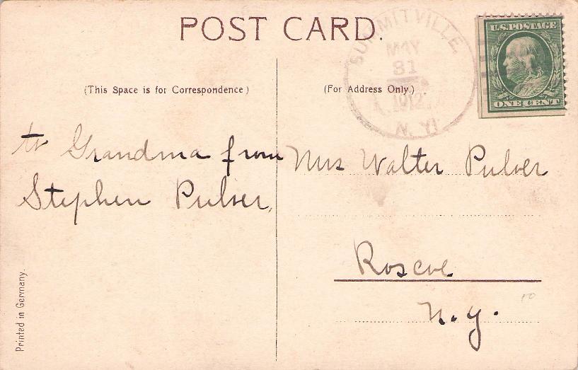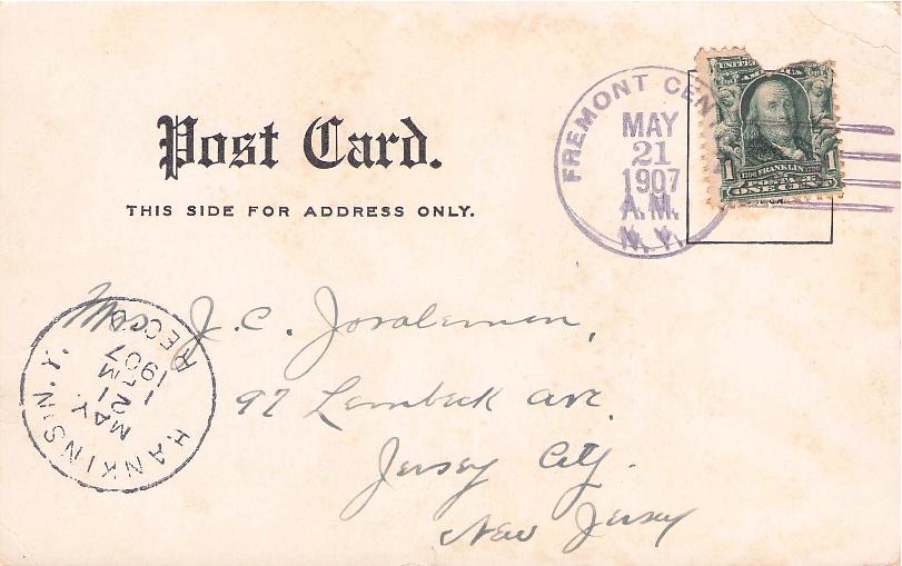 - Fremont Center 1907 Doane on post card with view of town, also Hankins NY Rec’d