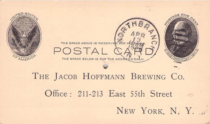 - Northbranch 1908 duplex on Postal card as Brewing Co. order [spindled]; 194? 4-bar on post card [generic with “Greetings from North Branch”]
