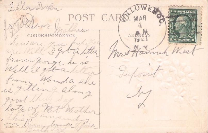 - Willowemoc (1871-1945) 1921 4-bar on post card