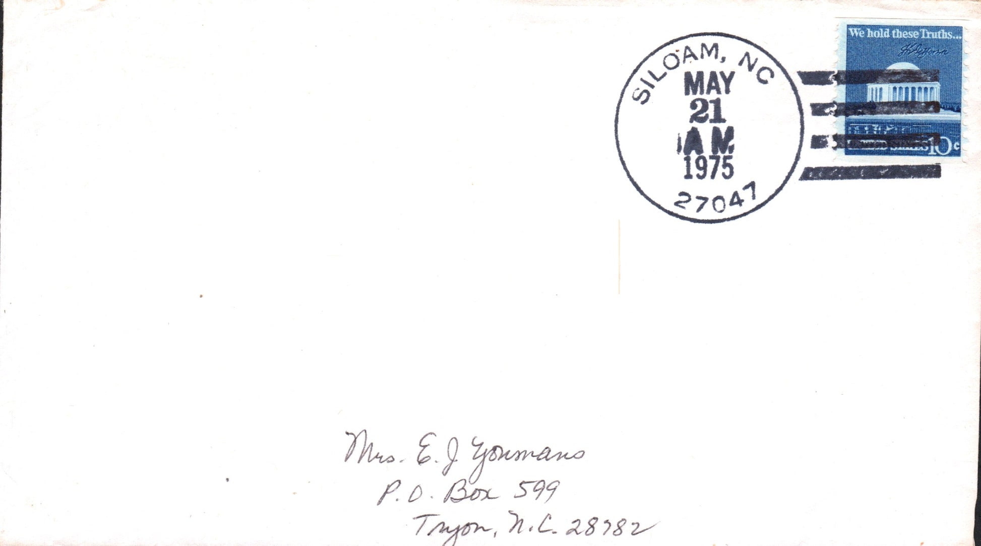 Siloam 1907 4-bar on post card; 1975 4-bar on cover
