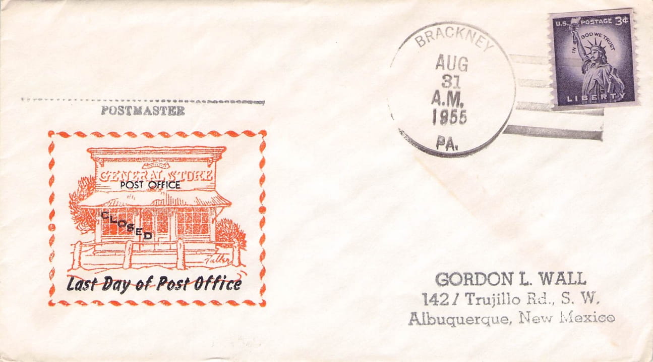 Brackney ( -1955) 1955 4-bar on cacheted LD cover