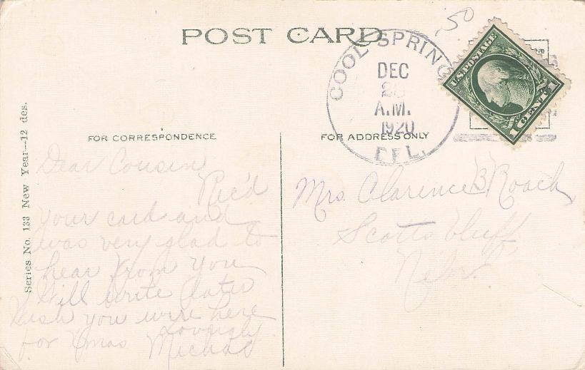 Cool Spring (1871-1935) 1920 4-bar on post card