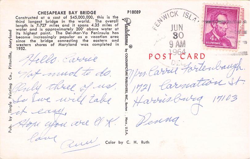 Fenwick Island 1964 4-bar on post card.