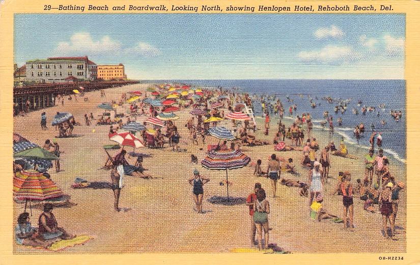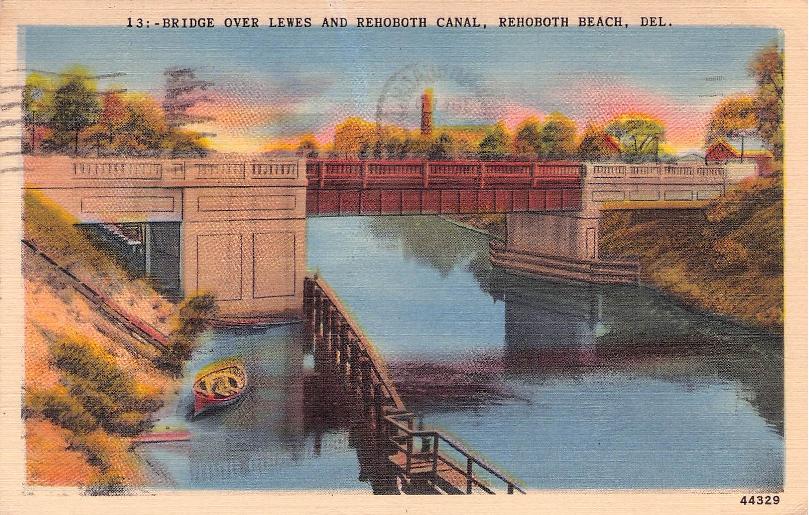 Rehoboth Beach Post cards: Silver lake [aerial view, chrome]; Convention Hall [aerial view, chrome]; Atlantic Sands Motel [chrome]; Henlopen Yacht Basin [chrome]; Country Club [linen, 1952]; “Bridge over Lewes and Rehoboth Canal [linen, 1946]; “Bathing Beach and Boardwalk [linen, 1952]; double strike of Lestershire NY and probably a Delaware office creates a puzzle on a nice “Souvenir Post Card From Horn’s Pavilion, Rehoboth” with “Breakers” (B&W) on the view side and “The Beach” vignettes on the address side; “Children’s Fishing Pier - Lake Gerar” [chrome]; “Beautiful Silver Lake looking west” [chrome]; View along Silver Lake Drive [linen]